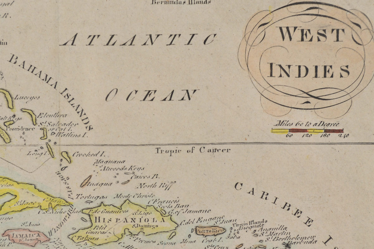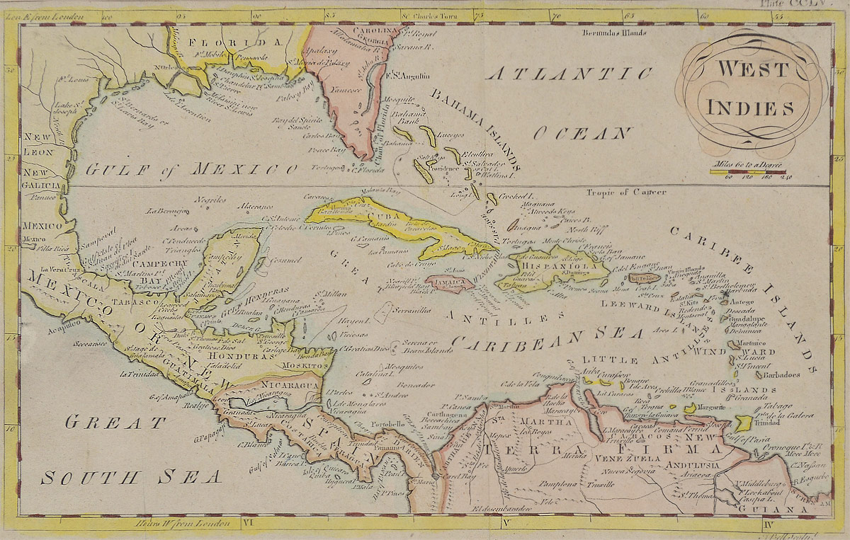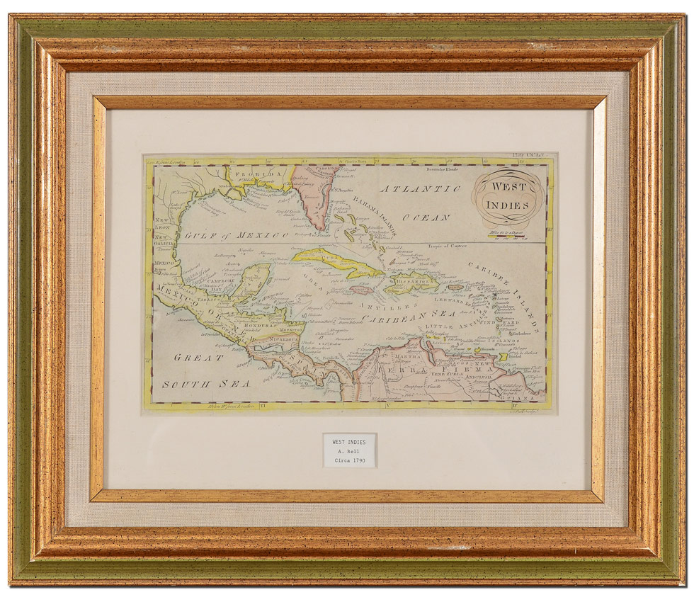 BELL, Andrew, (): West Indies, Edinburgh, 1790 map. Copper engraving, 8'' x 10'', hand colored in outline. Fine. Matted and framed, 15 3/4'' x 18 3/4''.