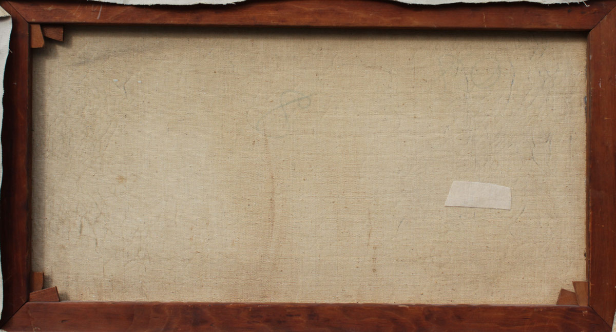 CONDITION: Stretcher bar wear, scattered craquelure throughout, repair to small puncture in the sky.