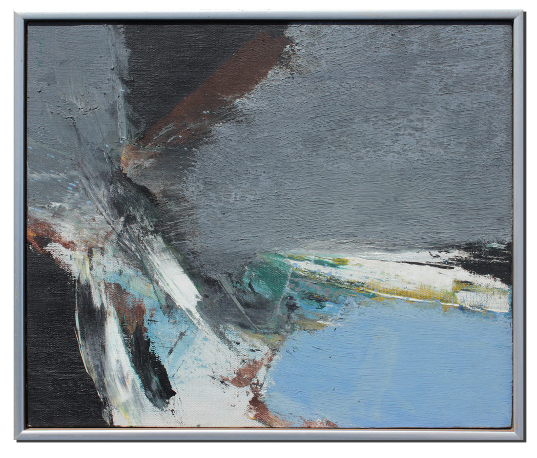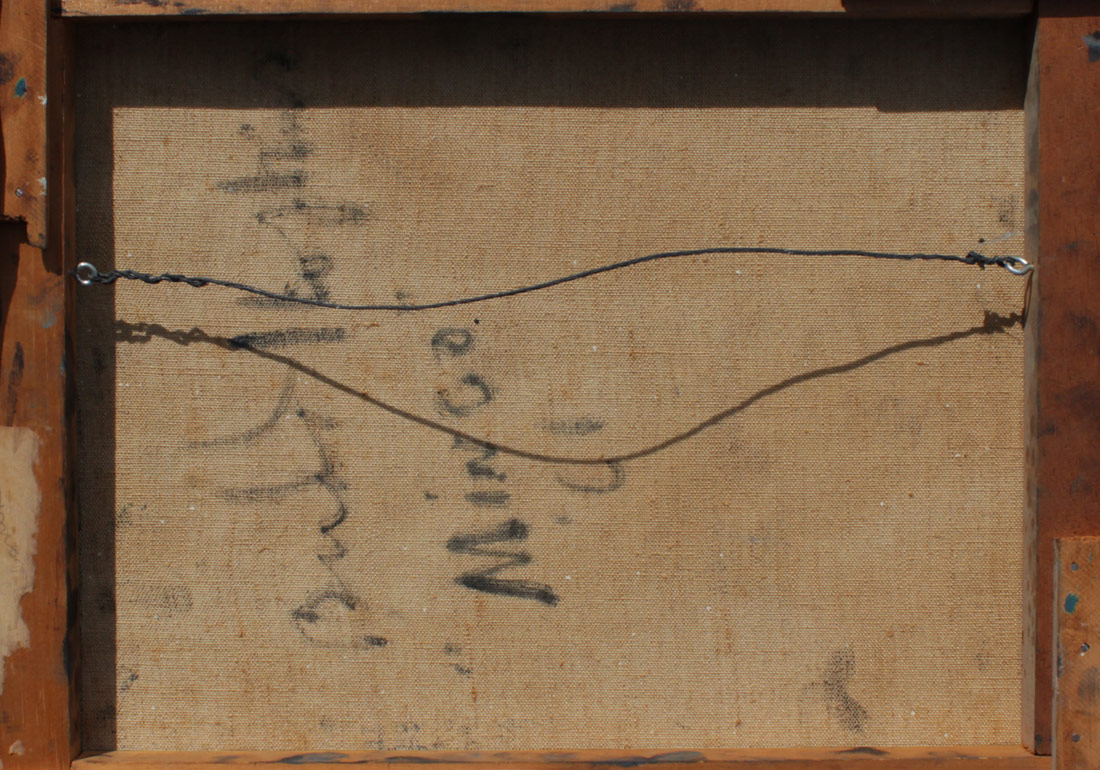 HOPKINS, Budd, (American, 1931- ): ''Mingo'', Abstract Composition, Oil/Canvas, 11 3/4'' x 14 1/2'', signed and titled on the canvas verso, dated '61, encased in wood frame with metal accent 12 1/2'' x 15 1/8''.