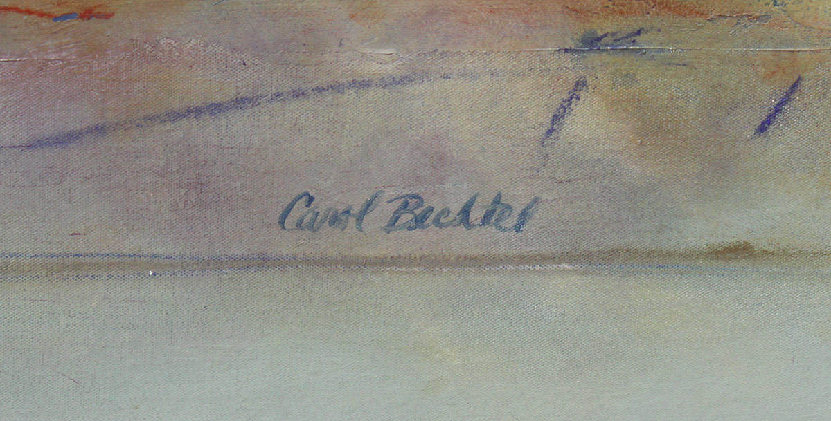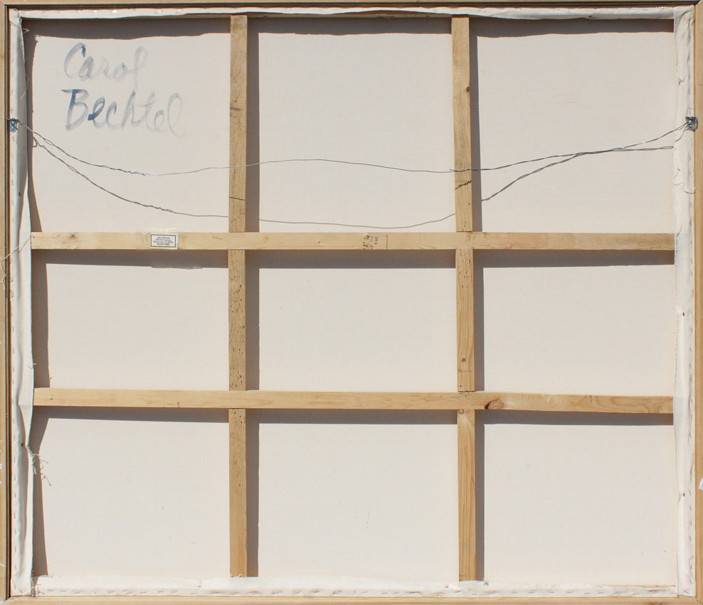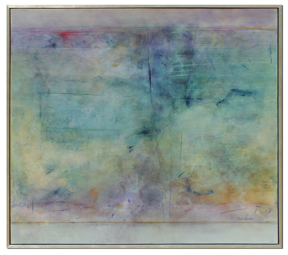 BECHTEL, Carol, (American, 20th Century): Abstract Composition in Dark Colors, Oil/Canvas, 51 3/4'' x 60'', signed lower right, signed verso, encased in a silver gilt frame with wear 54'' x 62''.