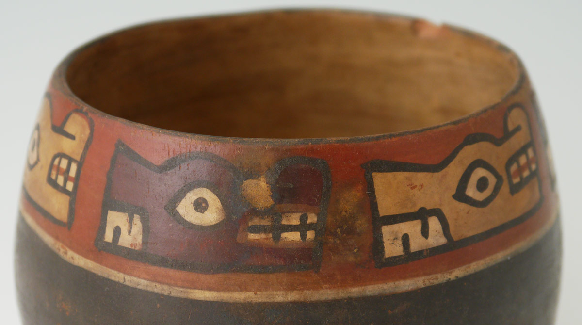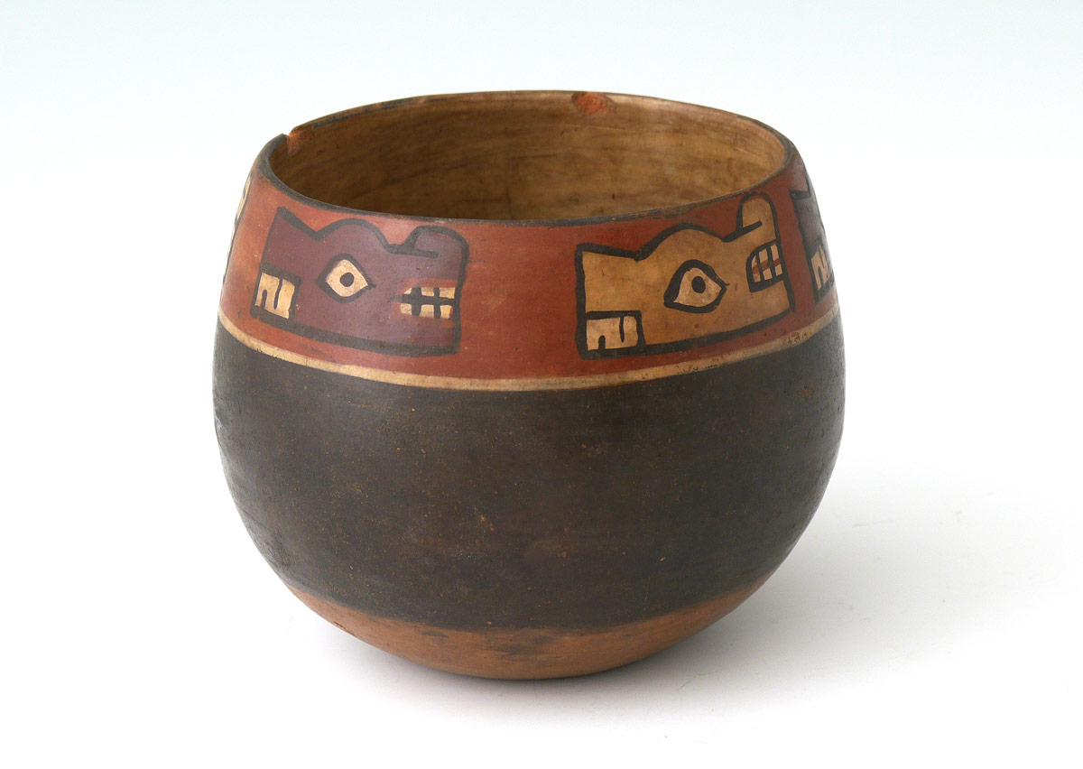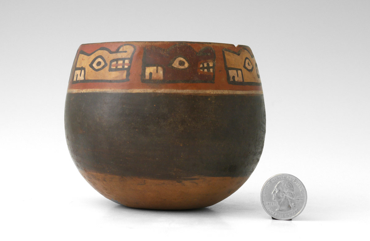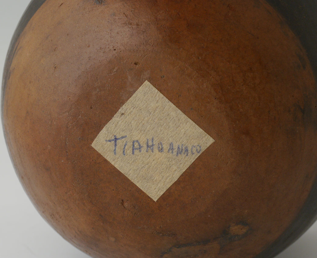 SOUTH AMERICAN TIAHUNACO BOWL: With animal design around the rim, marked with tape ''Tiahuanaco'', 3 1/4'' h., with a 3 3/4'' rim.