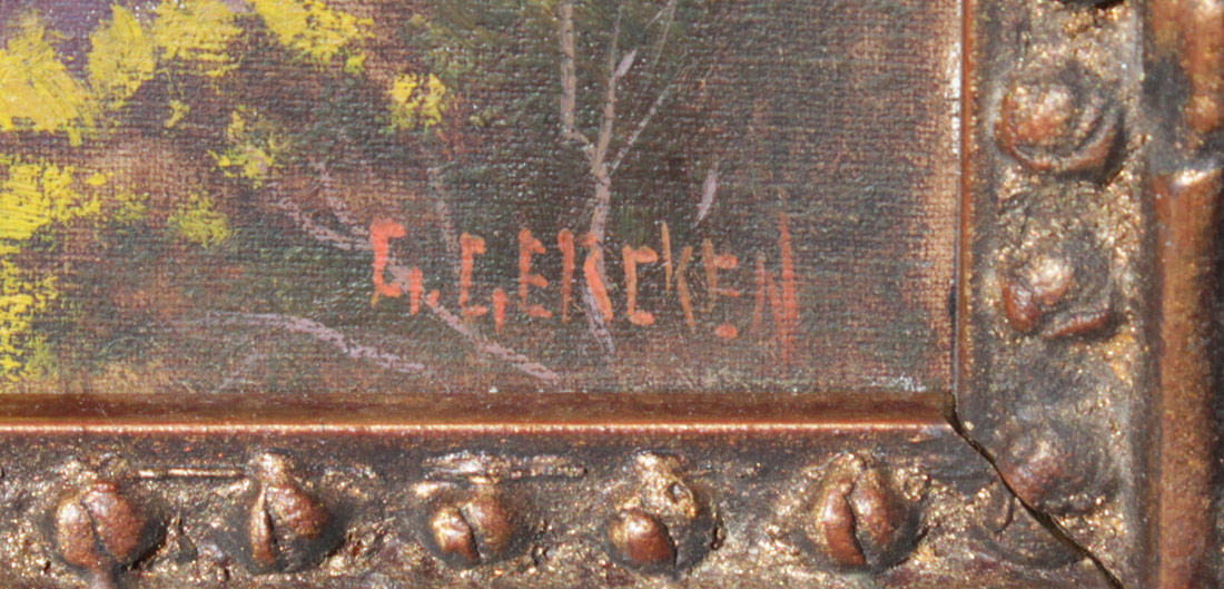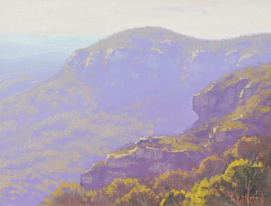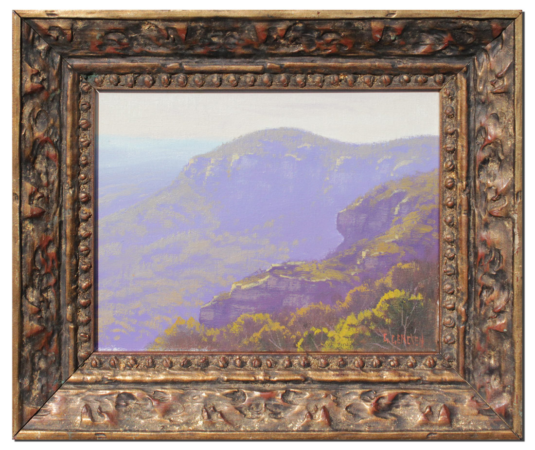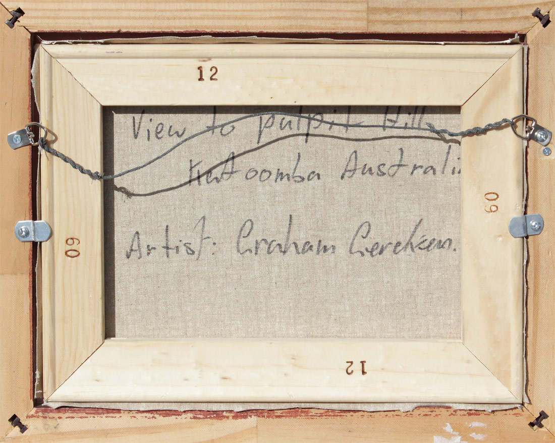 GERCKEN, Graham, (Australian, 1960- ): ''View to Pulpit Hill'', Oil/Canvas, 9'' x 12'', signed lower right, title and info verso, gold gilt molding with wear, 13 7/8'' x 16 7/8''.