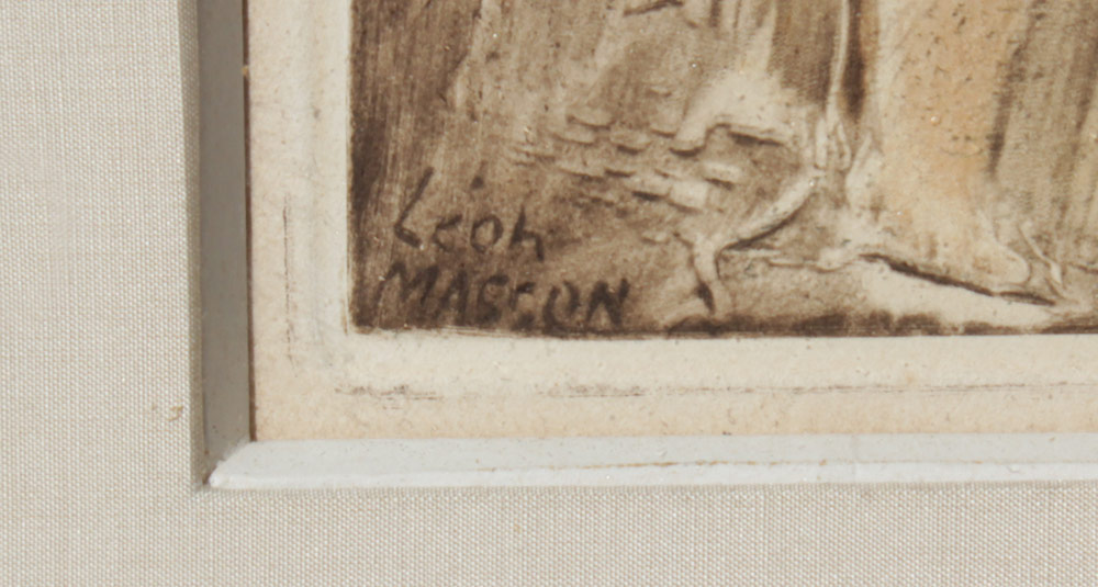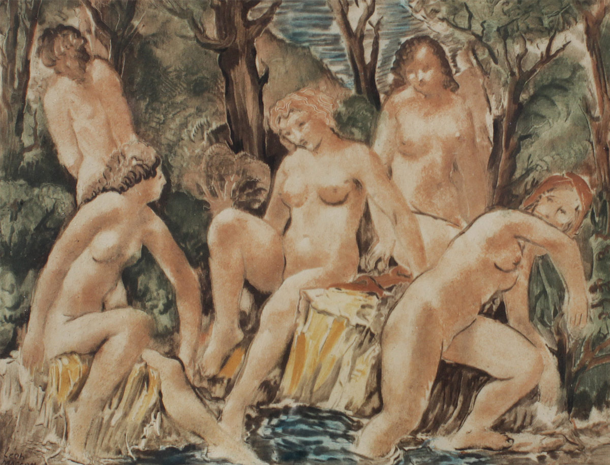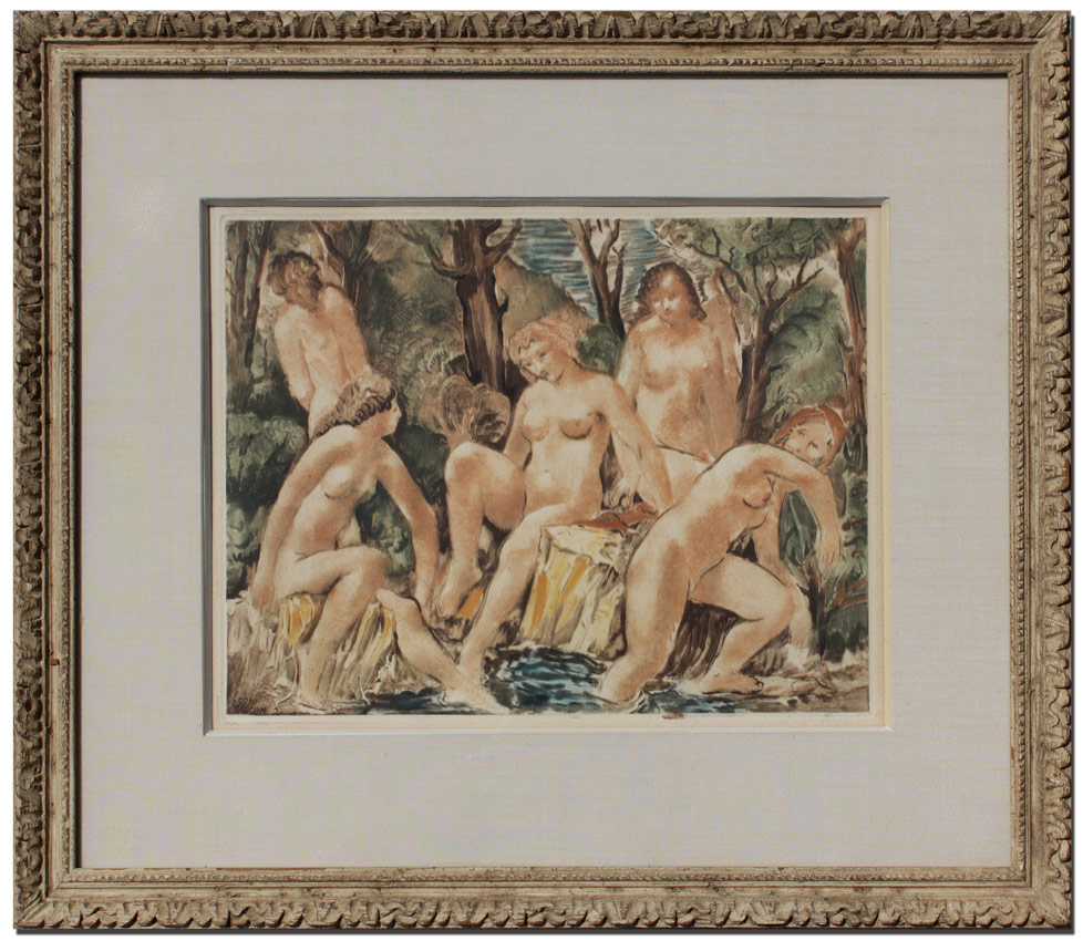 MASSON, Leon, (American, 1911-1984): Nude Female Bathers, Color Aquatint, Sight size 11 3/4'' x 14 1/2'', custom carved and painted frame with wear 19'' x 22 1/4''.