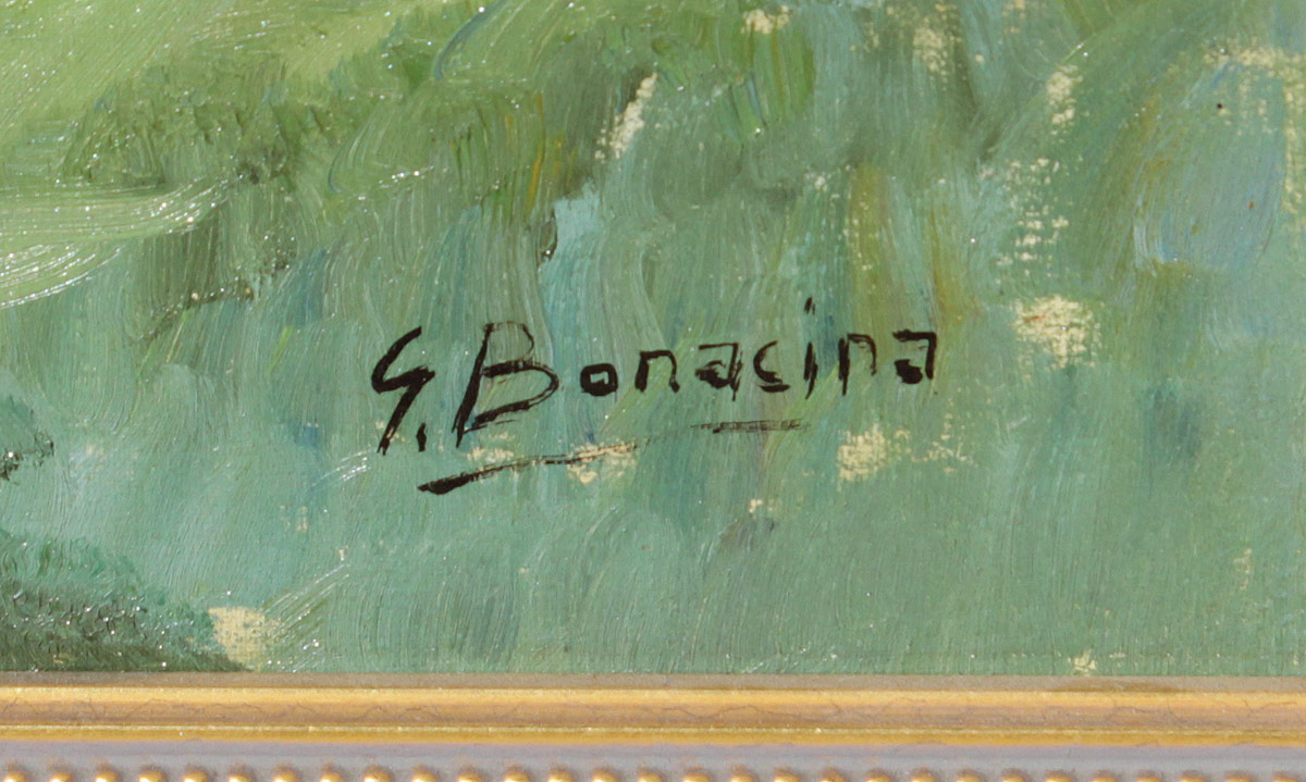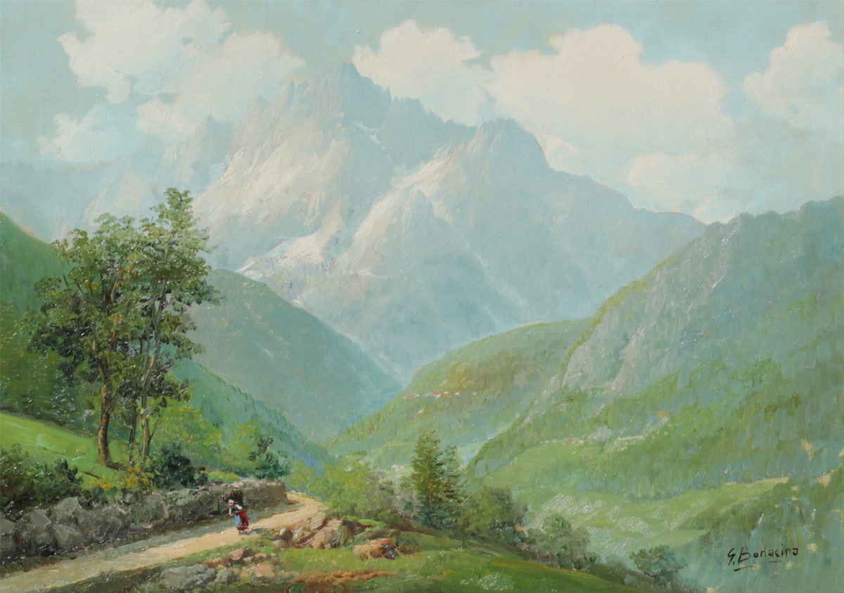 G. BONACINO EUROPEAN ALPINE PAINTING: Oil/Canvas, 19'' x 27 1/8'', signed lower right, gilded frame 28'' x 36'' x 3''.