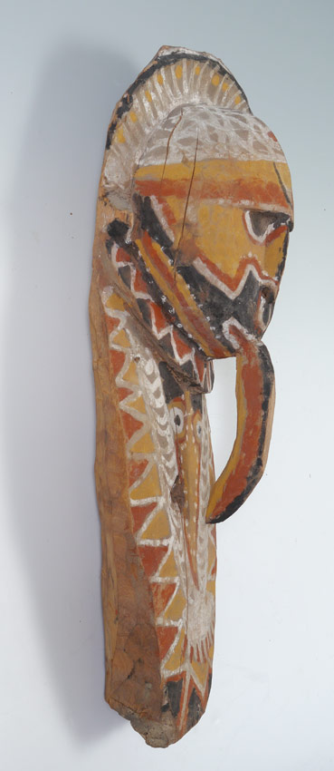 NEW GUINEA CARVED FIGURAL BUST: Polychrome painted figural bust of a man, overall measures 28 1/2'' h. x 9 1/2'' x 7 3/4''