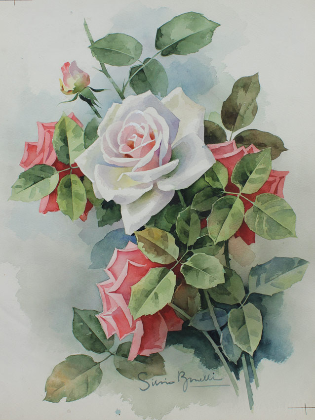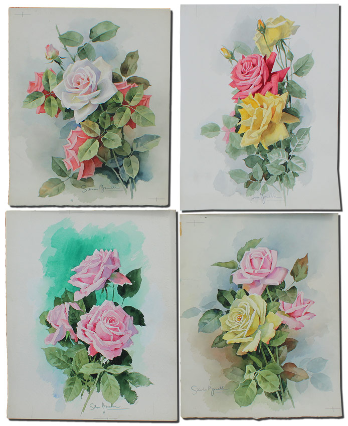 BONELLI, Silvio, (Italian, 1916- ): 4 Still Life of Roses, Watercolors, all unframed, all approximately 19'' x 14 1/2'', all signed.