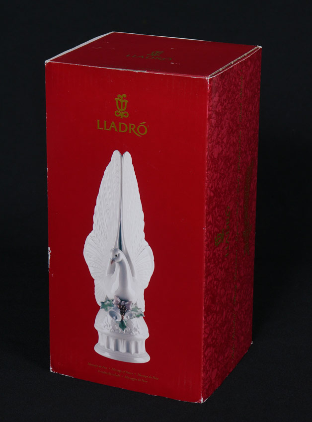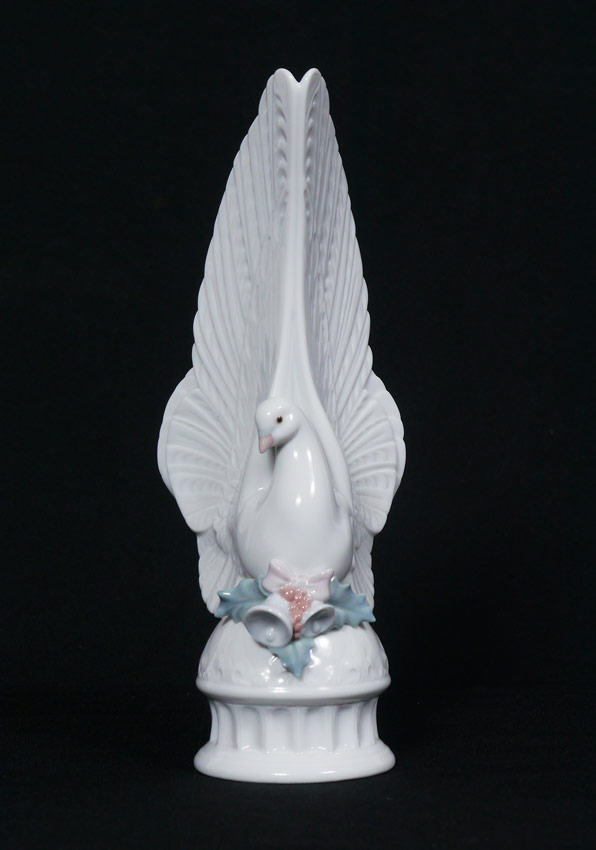 LLADRO PORCELAIN FIGURE ''MESSAGE OF PEACE'': #6587, Dove Christmas tree topper, Francisco Polope sculptor, issued and retired 1998, 10 3/4''h.