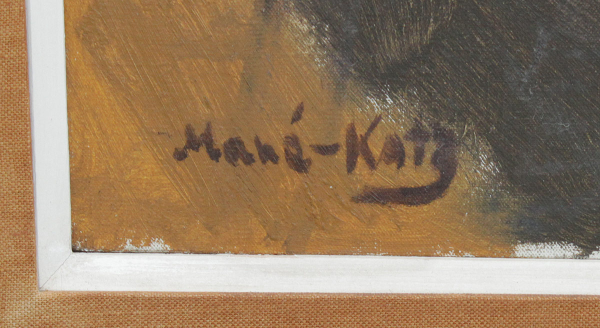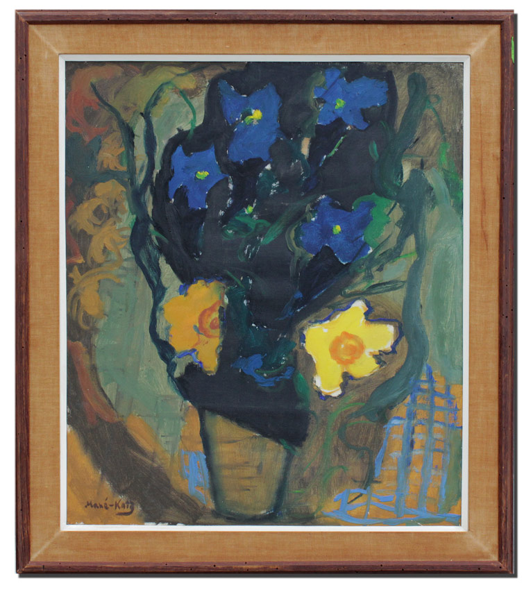 MANE-KATZ, (French-Ukrainian, 1894-1962): Still Life of Blue and Yellow Flowers in a Pot, Oil/Canvas, 28'' x 24'', signed lower left, encased in wooden frame with fabric mat 34 1/4'' x 30 1/2''.