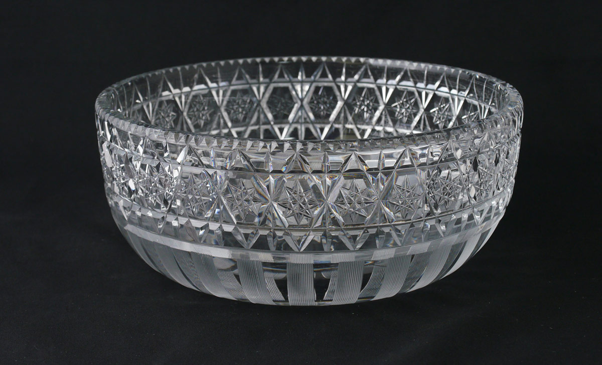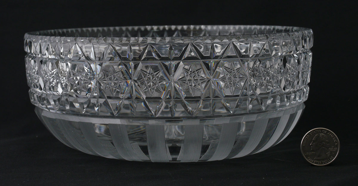 SIGNED HAWKES CUT GLASS BOWL: 3 3/8'' h. x 8''.