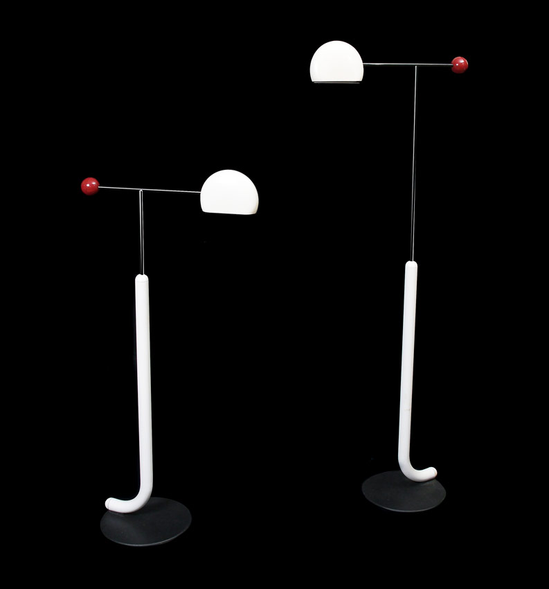 TOSHIYUKI KITA FOR LUCI ITALIA PAIR ''TOMO'' FLOOR LAMPS: Adjustable height and pivot floor lights. Maximum height is 6', minimum 4'6''. At the widest 24''. Ca. 1990.