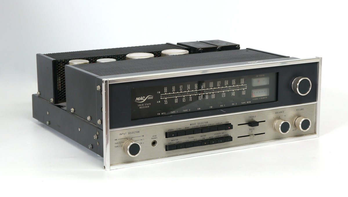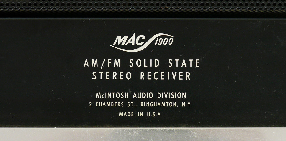 MAC 1900 MCINTOSH TUNER / AMPLIFIER: Serial number AL 1012, solid state tuner / pre amp / amplifier. Measures 5 5/8'' h. x 16'' x 14 1/4''.