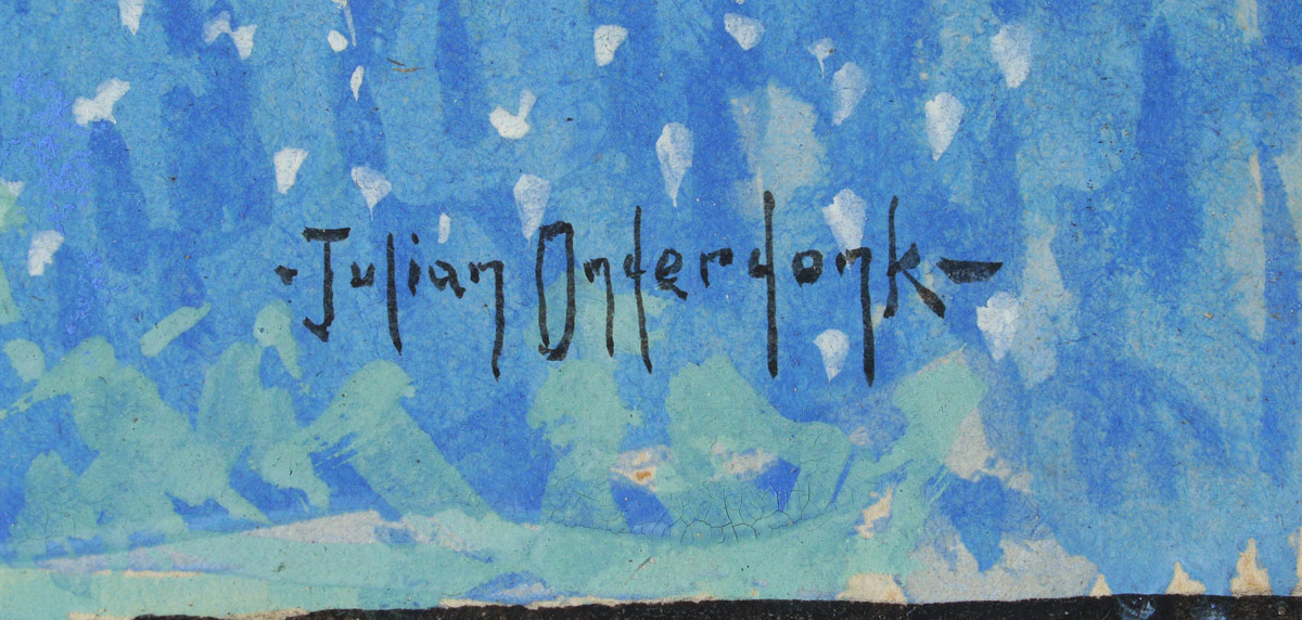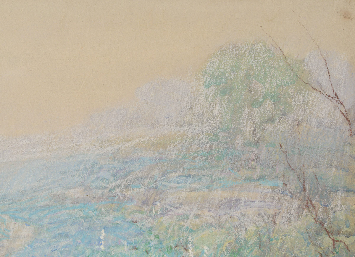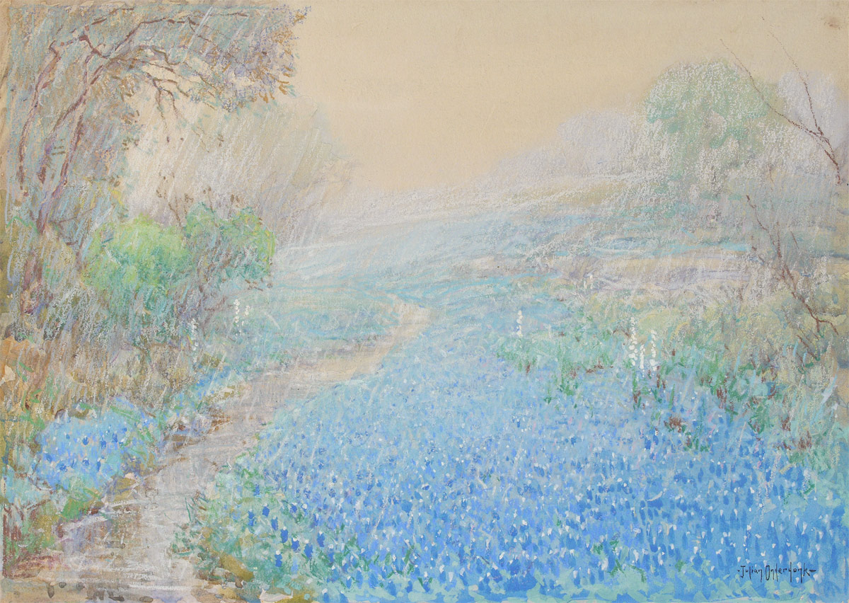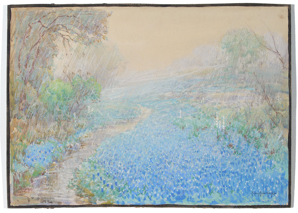 ONDERDONK, Julian, (American, 1882-1922): Field of Blue Bonnets in a Rainy Landscape, Watercolor/Pastel, 7 1/4'' x 10 1/4'', signed lower right, framed.