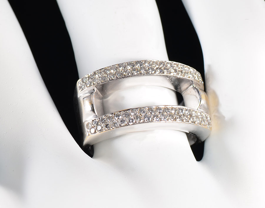 CUSTOM .50 CTW DIAMOND RING: 14K white gold ring contains 70 round brilliant cut diamonds totaling .50 Ct., rated VS in clarity and G-H in color. The diamonds are pave set. Weight: 9.0 grams. Size: 6