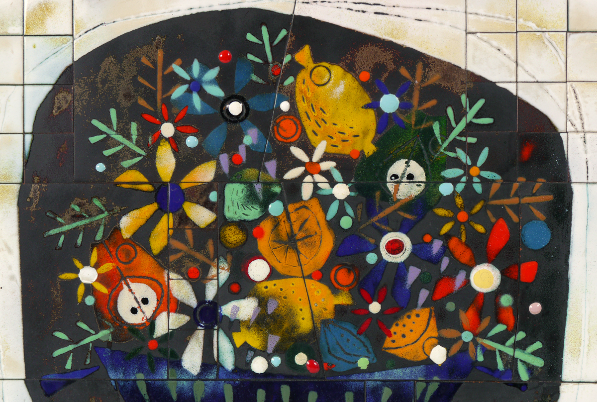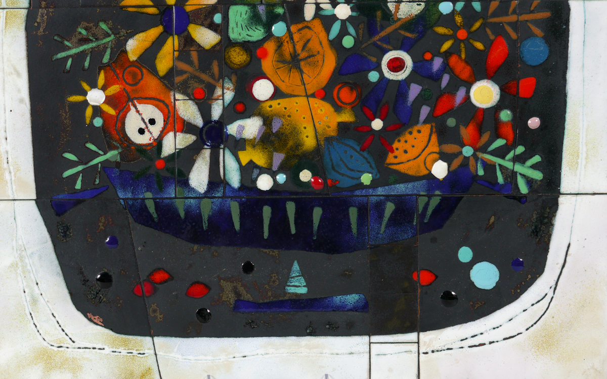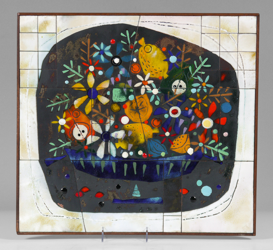 CALIFORNIA MODERNE MOSAIC TILE JOHN SMITH PLAQUE: Unsigned, 18'' x 19 3/4'', no visible signature, the consignor was acquaintances with the Artist.
