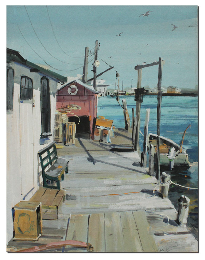 KLIMLEY, Stanley, (American, 20th Century): Sunny Day at the Docks, Gouache/Board, 18'' x 14'', unframed, signed lower right.