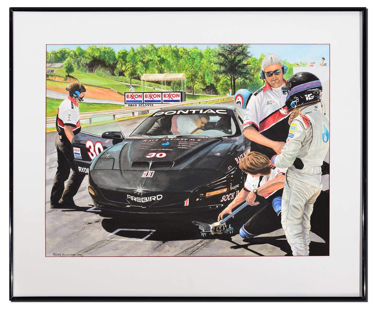 BLANCHARD, Roger, (American, 20th Century): Pontiac Firebird Pit Crew Race Against MS, #30, Atlanta Road Track, Photorealistic Painting, Sight size 17 3/4'' x 23 3/4'', signed lower left, framed 24 1/2'' x 30''.