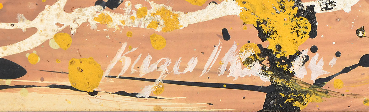 KUZULKA, Kierstead, (American, 1905-1985): Composition V 31-64, Oil/Masonite, 24'' x 48'', signed lower right, thin edge metal frame.