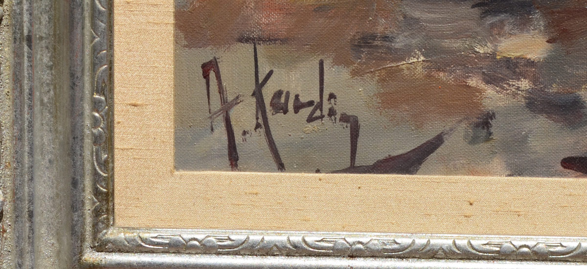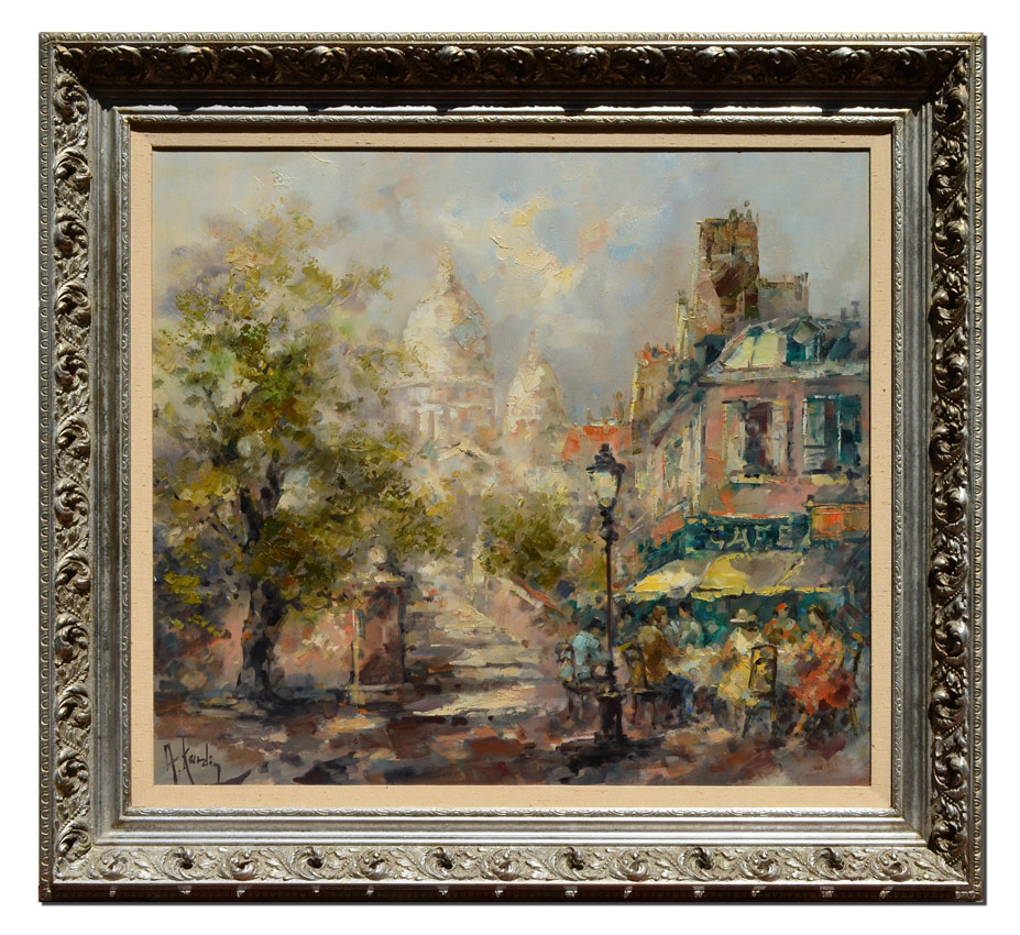 KARDIN, Alexander, (Austrian, 1917-): Parisian Scene, Oil/Canvas, 27 1/2'' x 32'', signed lower left, encased in pierced carved and silver gilt frame 37'' x 40 1/2'', bears a WT Burger label affixed verso.