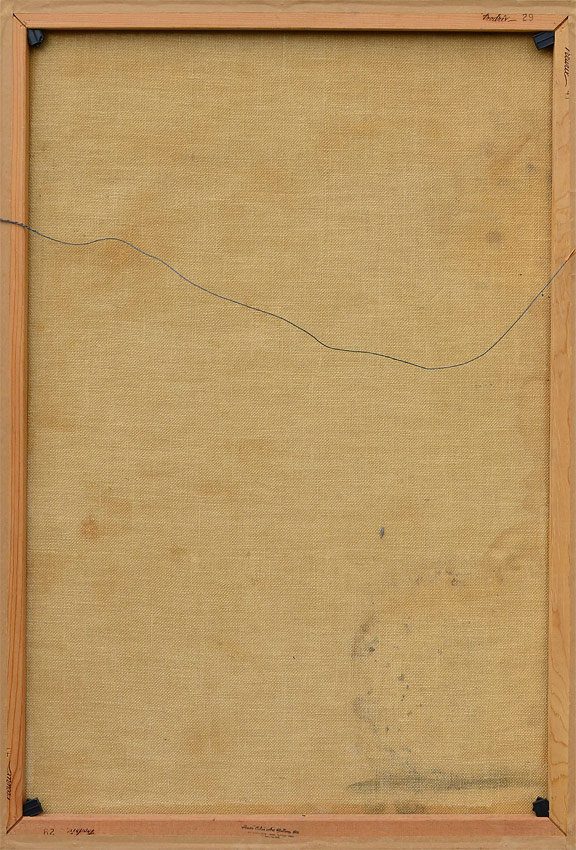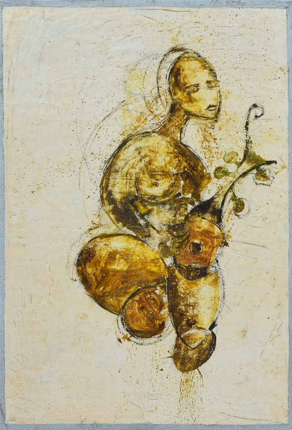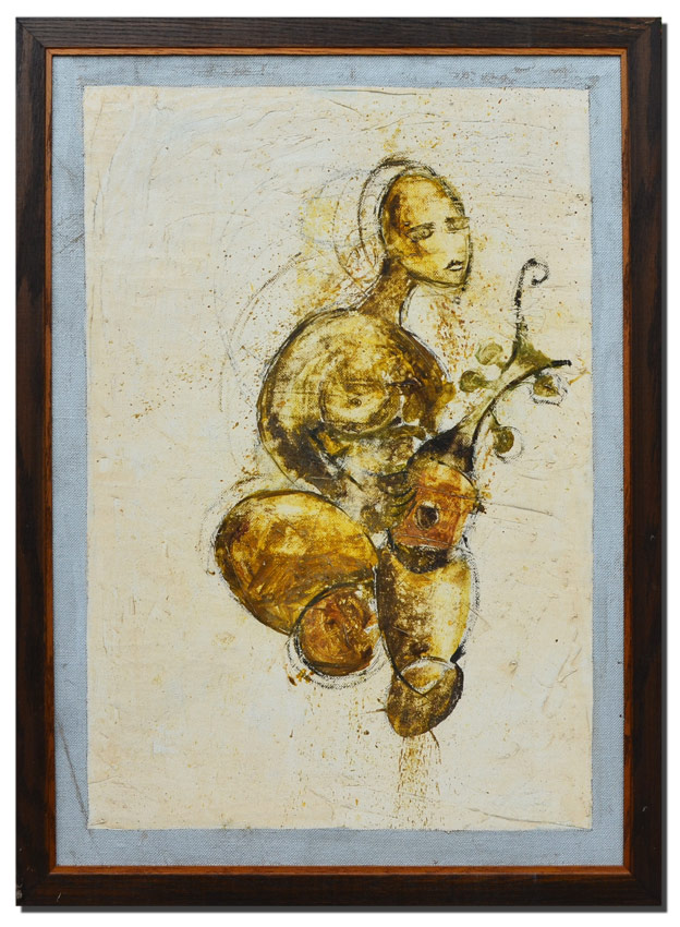 1950'S MODERNE MUSICIAN PAINTING: Oil/Canvas, believed to be African, 33'' x 23 1/4'', no visible signature, wood frame with gilded liner 37'' x 26 1/2''.