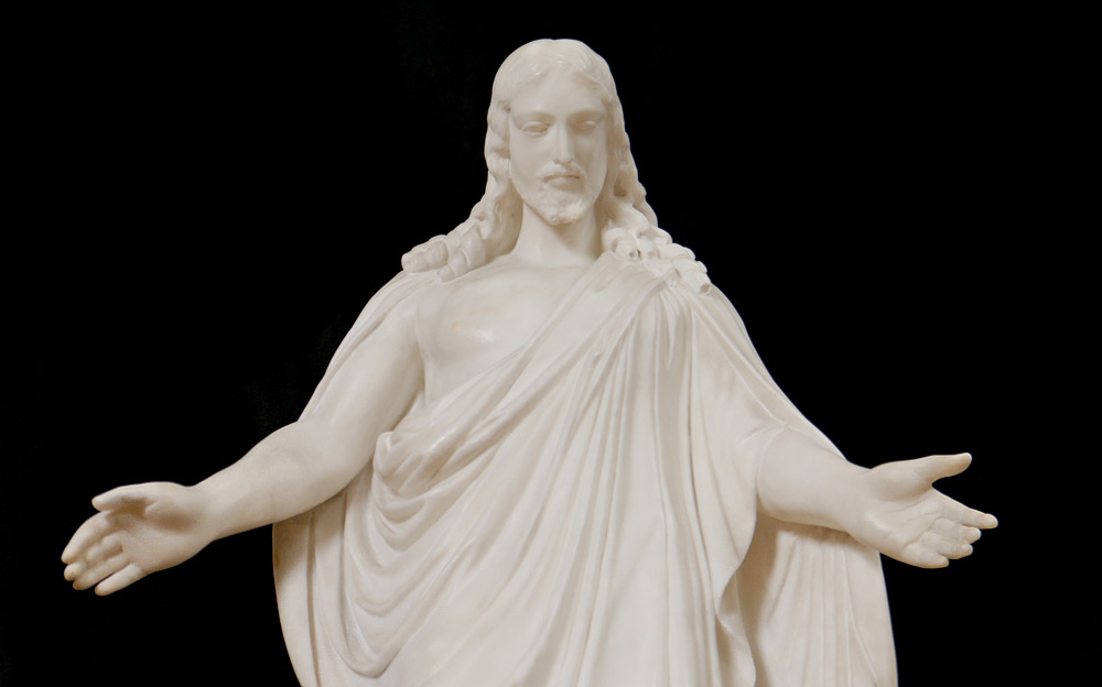 BAZZANTI, Pietro, (Italian, 1825-1895): Full Length Portrait of Jesus Christ, Carrera Marble, 21 1/2'' h., 14'' w., 7'' d., incised signature.