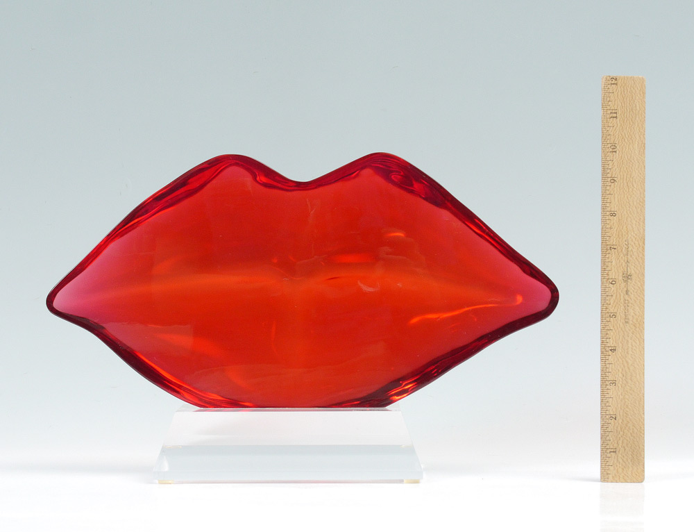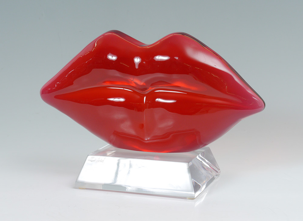 HAZIZA, Shlomi, (Israeli-American, 20th Century): ''Lips'', Red Acrylic, overall measures 9 1/2'' h. x 15 1/2'' w., incised signature and label on 2''h. x 8'' x 6''d clear acrylic plinth.