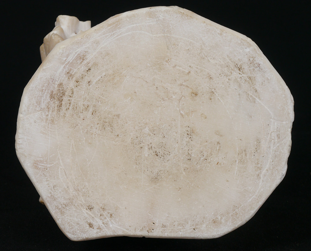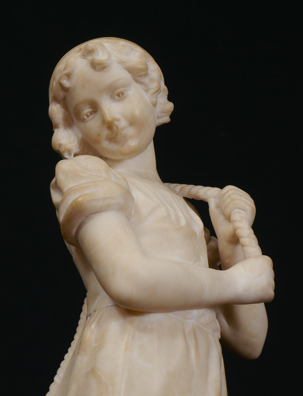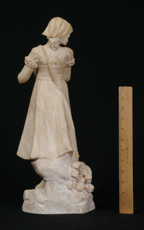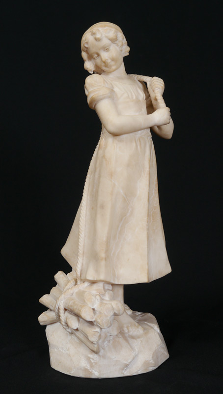 ITALIAN CARVED MARBLE SCULPTURE OF A YOUNG GIRL WITH FIREWOOD: 19 1/2'' h., exceptional detail and proportion to this young beauty with her roped bundle of firewood.