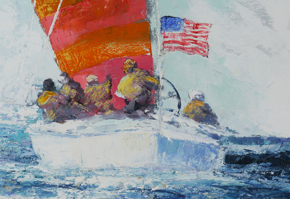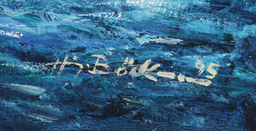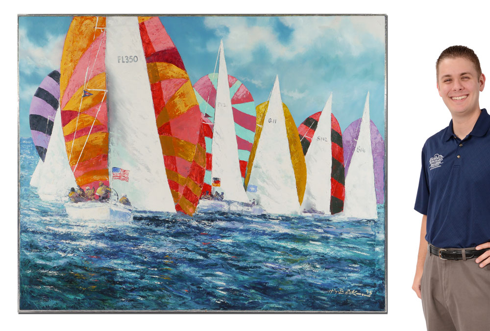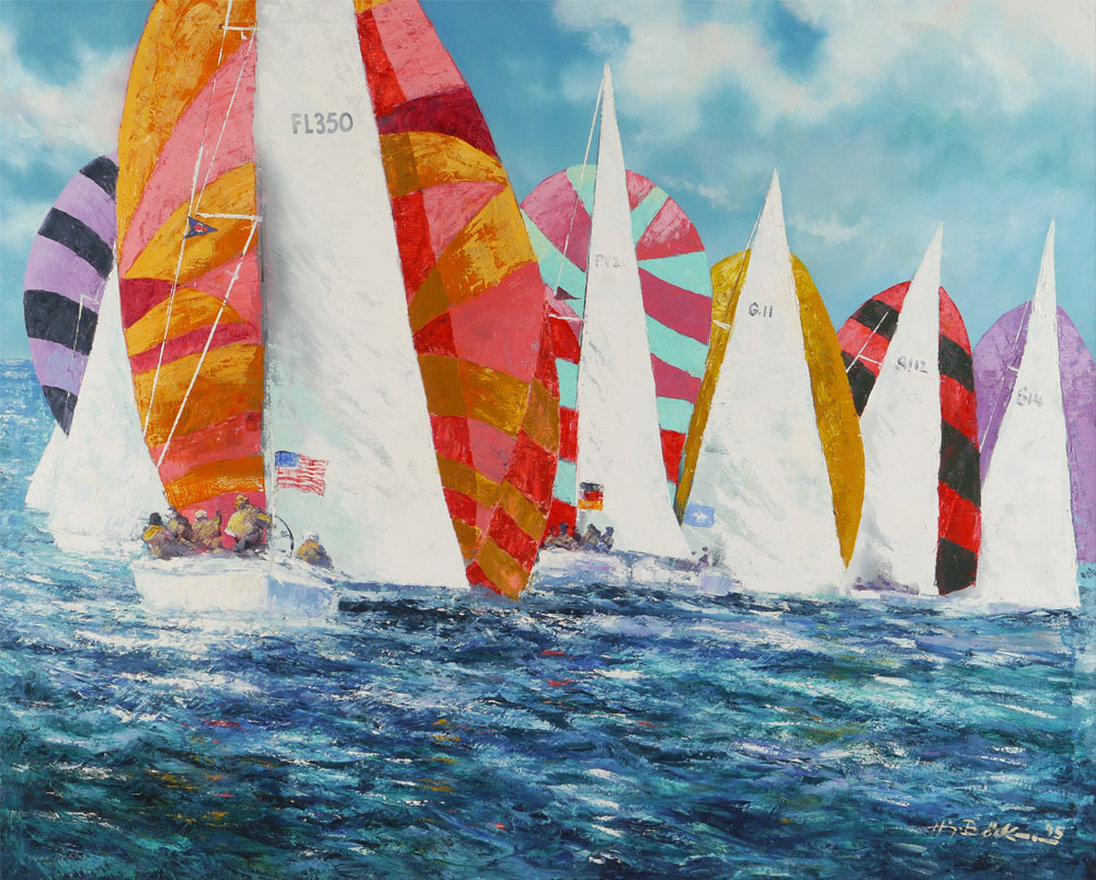 BOECKMANN, Heinz, (German, 20th Century): Yacht Race, Oil/Canvas, 48'' x 60'', signed lower right, dated '95, encased in a foil wrapped wood frame with wear 49'' x 61''.