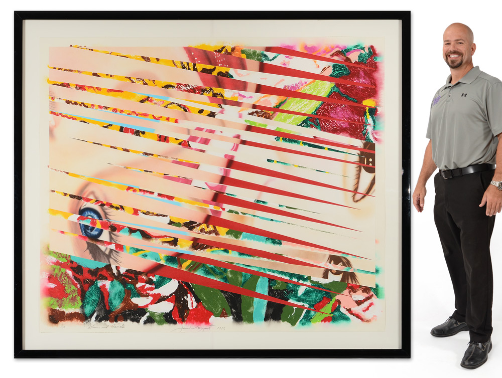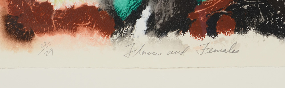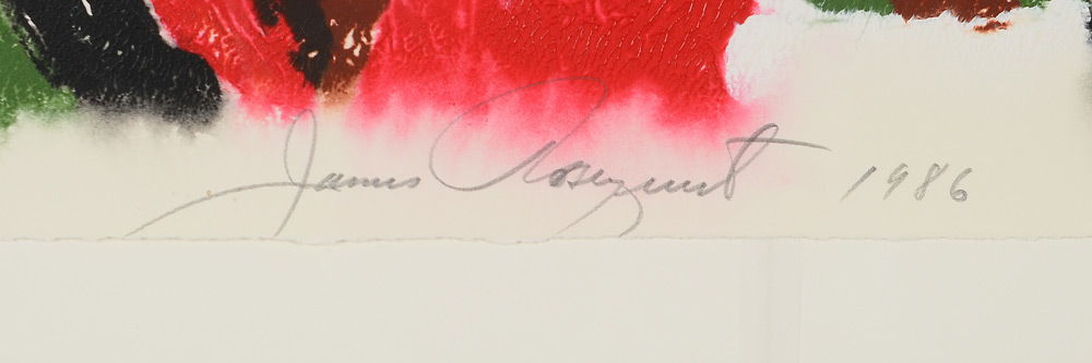 ROSENQUIST, James, (American, 1933- ): ''Flowers & Females'', Monotype/Lithograph, 60'' x 70'', pencil signed, dated 1986, titled lower left, #'d 22/29, archival float mounted and encased in custom black lacquer frame 71'' x 80 1/2'', From the Collection of Winifred Bell. Sold w/three books.