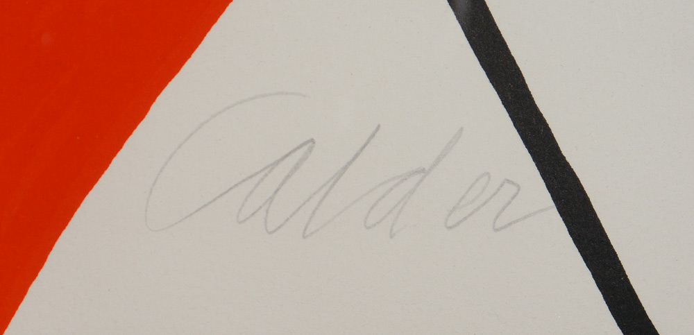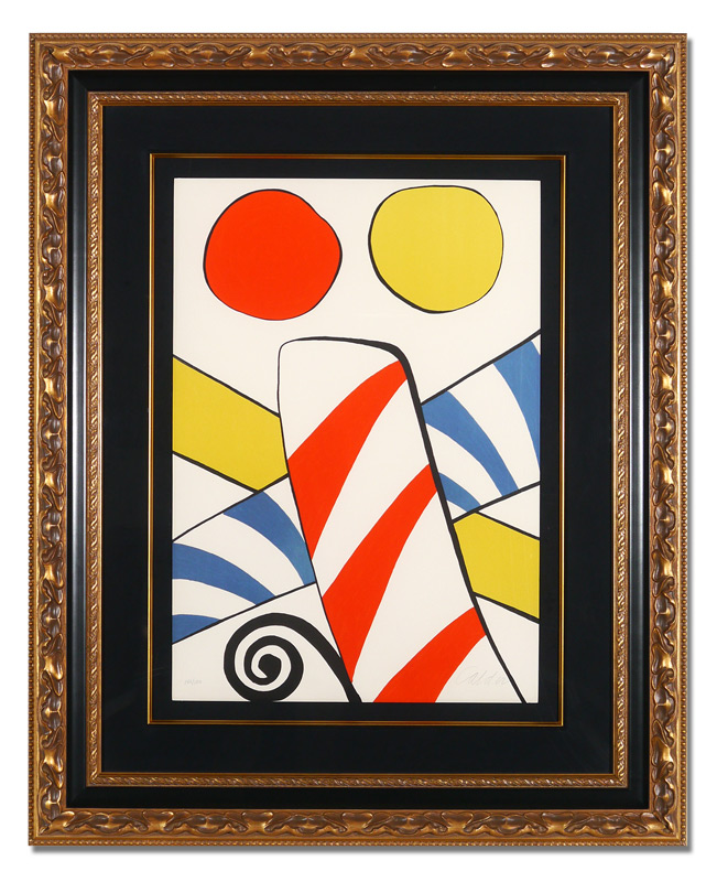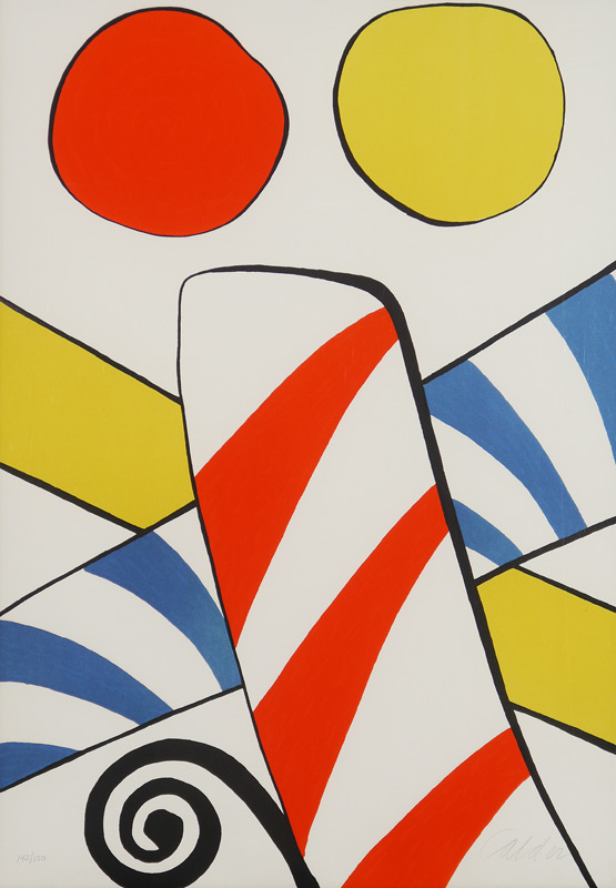 CALDER, Alexander, (American, 1898-1976): Candy Cane, Lithograph, 29'' x 20'', pencil signed lower right, #'d 142/150 lower left, custom frame with minor wear 44 1/2'' x 37'', float mounted in the frame.
