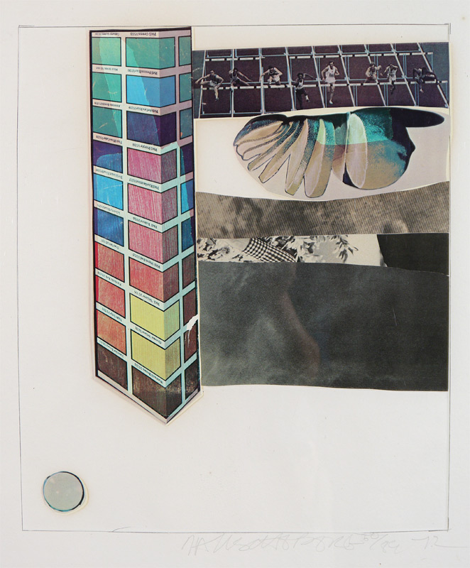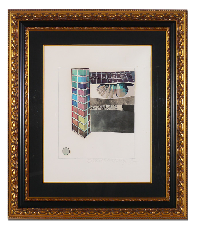 RAUSCHENBERG, Robert, (American, 1925-2008): Mixed Media Print from Horsefeathers thirteen, ''IV'', Lithograph, Screenprint, Pochoir, Collage and Embossing in Colors, Sight size 26 1/2'' x 21'', pencil signed lower right, dated '72, custom frame 42'' x 36''.