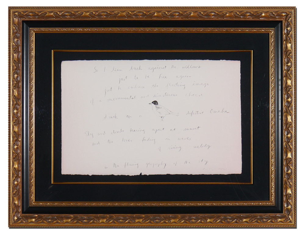 DINE, Jim, (American, 1935- ): ''Bird'', Lithograph on Hodgkinson Paper, 17 1/4'' x 27 1/2'', pencil signed lower right by Ron Padgett, #'d 73/75, pencil signed lower left by Jim Dine, custom frame 34 1/4'' x 44 1/2''.