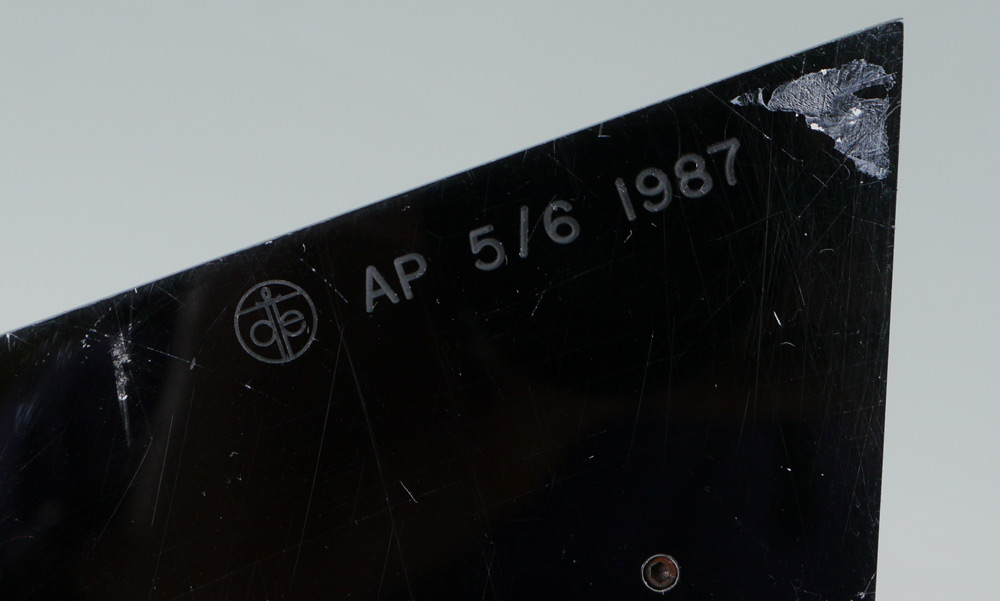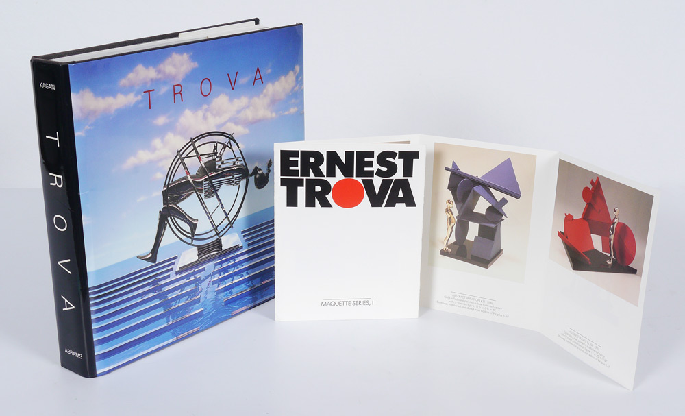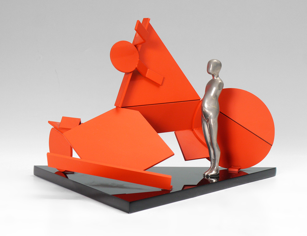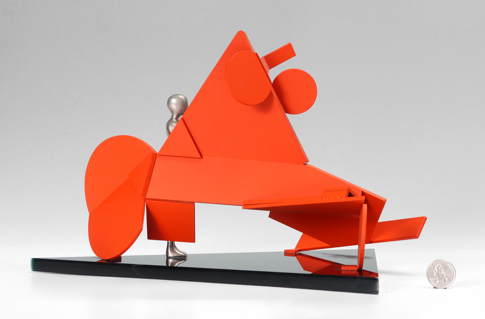 TROVA, Ernest, (American, 1927-2009): Abstract Variation #38, 1987, Maquette of Cold-rolled steel painted in red flattened epoxy with 6'' nickel plated bronze figure, 13'' x 20'' x 14 3/4'', Artist proof numbered 5/6 on the bottom. From the collection of Winifred Bell, sold with original exhibition catalog and the book, ''Trova'', by Abrams.