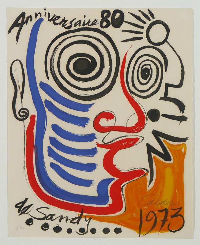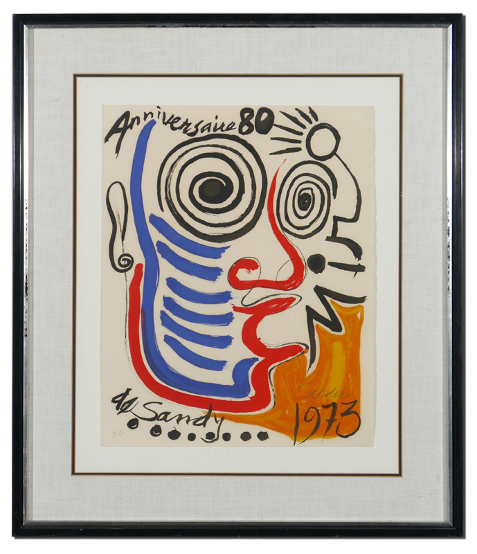 CALDER, Alexander, (American, 1898-1976): Anniversair 80 de Sandy..1973, Lithograph, 20'' x 15 1/2'', pencil signed lower right, #'d HC lower left, painted black frame 30'' x 26''.