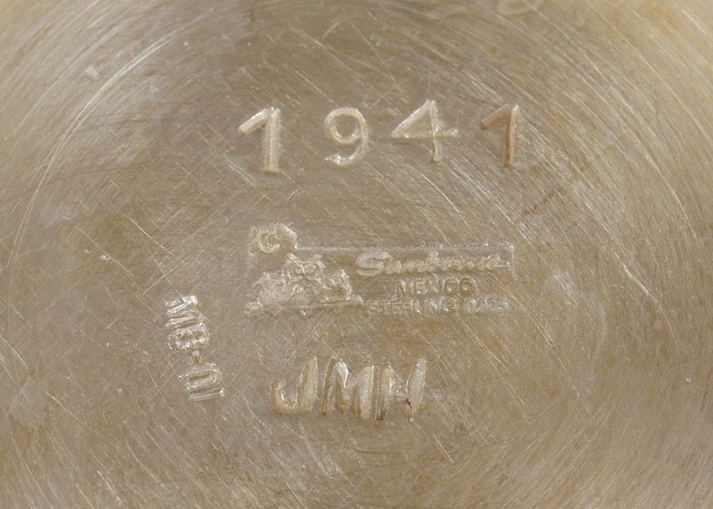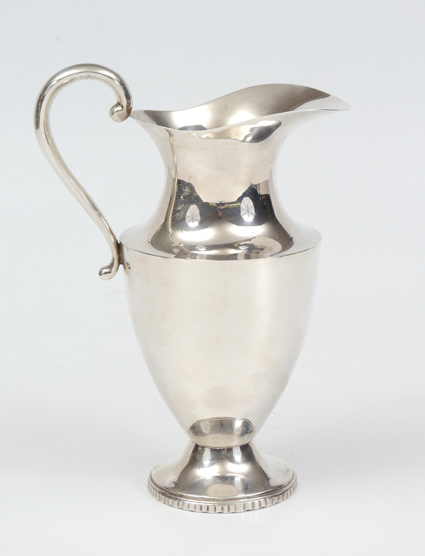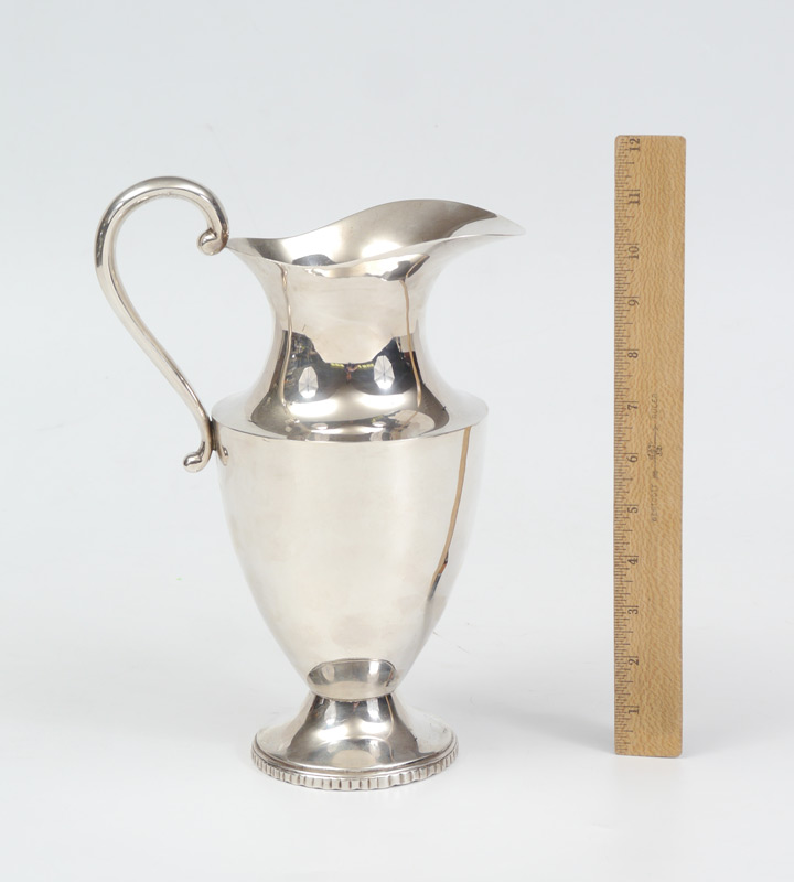 SANBORNS MEXICAN STERLING SILVER PITCHER: Marked on base 1941, Sanborns Mexico Sterling 0.925, JMH, MB-01. 11 1/2'' h. x 8''. Approx. 27.1 troy oz.