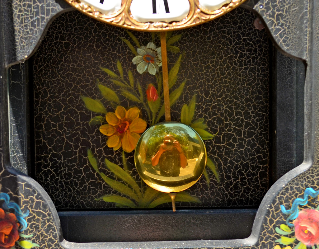 CONDITION: Paint flake to both clock and pedestal. Currently running however not guaranteed to continue. Key and pendulum in office.
