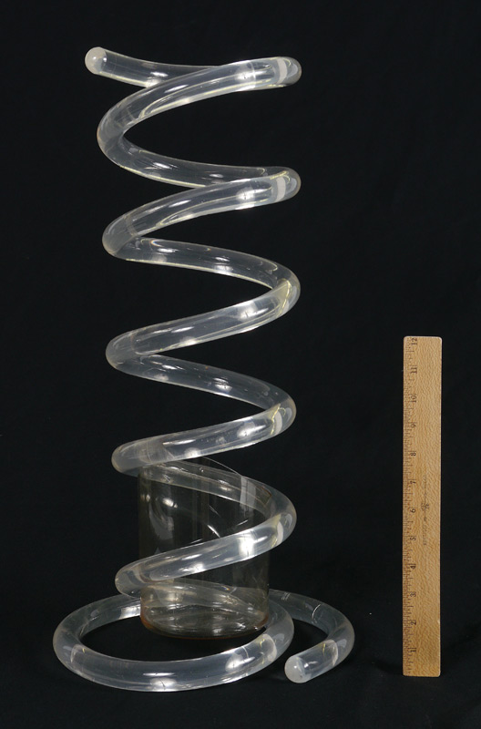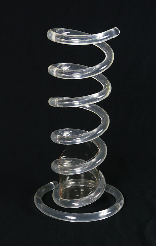 DOROTHY THORPE LUCITE UMBRELLE STAND: Coiled tubular Lucite with insert, overall measures 22 3/4'' h. x 11''.