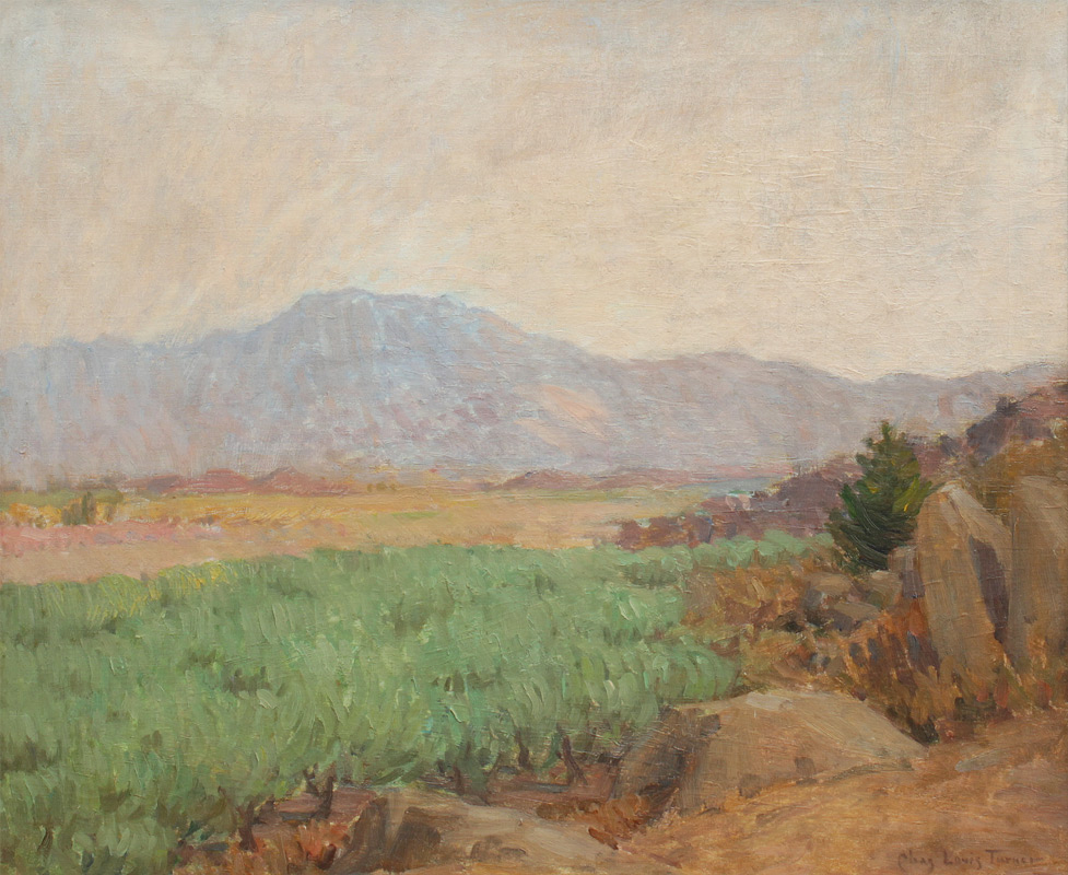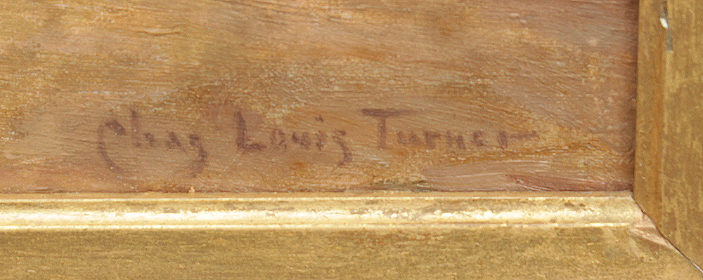 TURNER, Charles Louis, (American, 1867-1919): Desert Landscape with Mountains in the Distance, Oil/Canvas, 20'' x 24'', signed lower right, encased in carved and painted frame with wear 26 1/2'' x 30 1/2''.