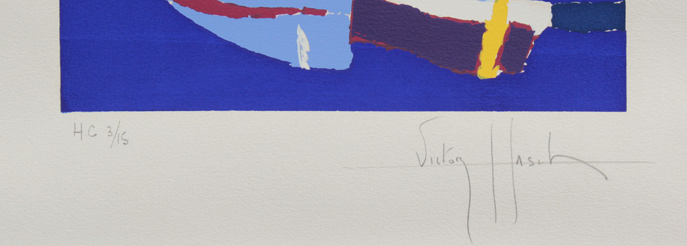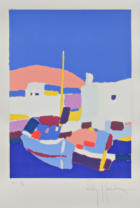 HASCH, Victor, (French, 1945- ): Dockside Scene, Serigraph, 19 3/4'' x 15 3/4'', pencil signed lower right, #'d HC for ''Hors concours'' & 3/15 lower left, 28'' x 24'' framed but not under plexi.