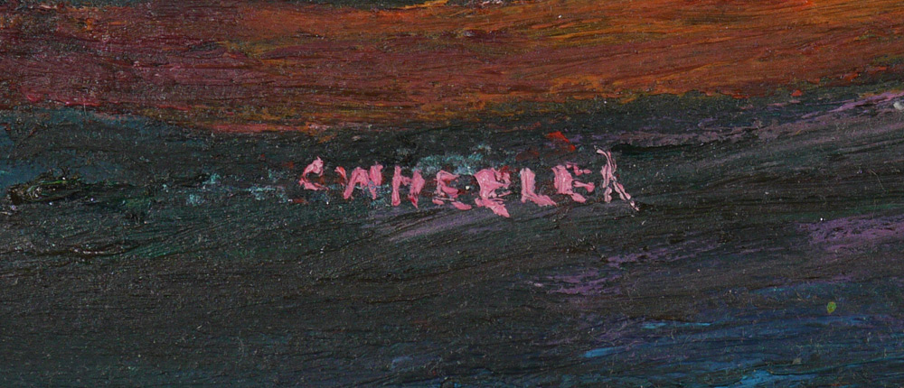CONDITION: Tape repair to frame, tiny paint flake upper left edge.