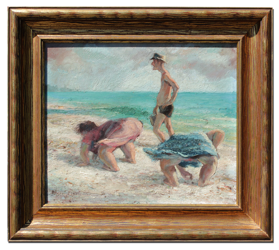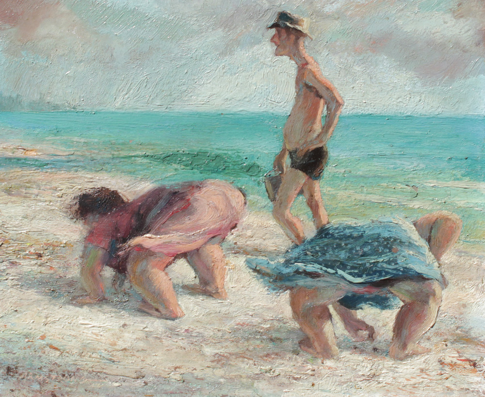 ARMSTRONG, Victor, (American, 20th Century): Beach Combers, Oil/Masonite, 10'' x 12'', signed lower left, gilded frame 13 1/2'' x 16''.