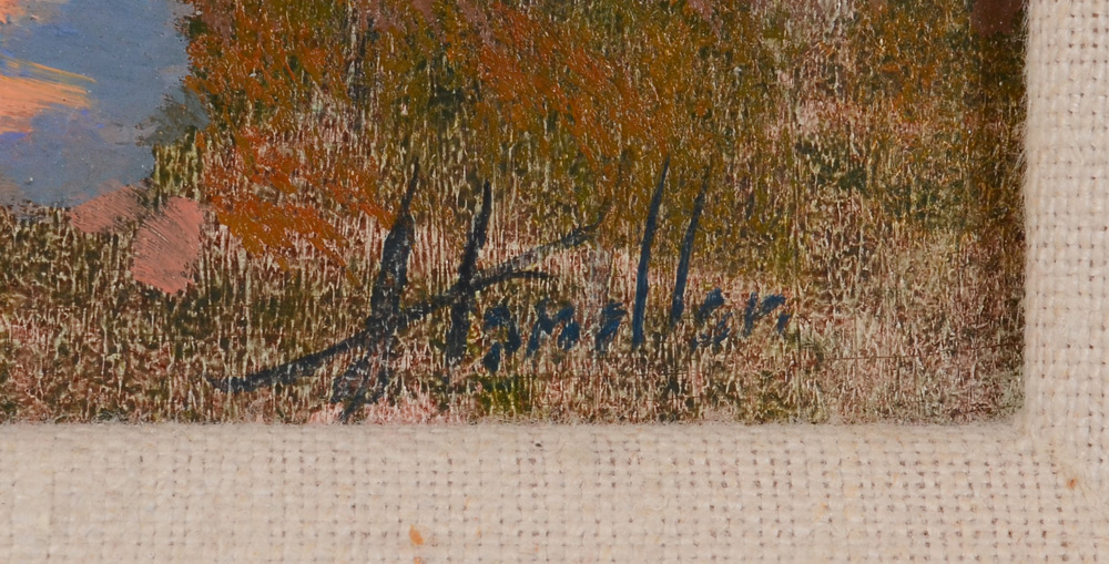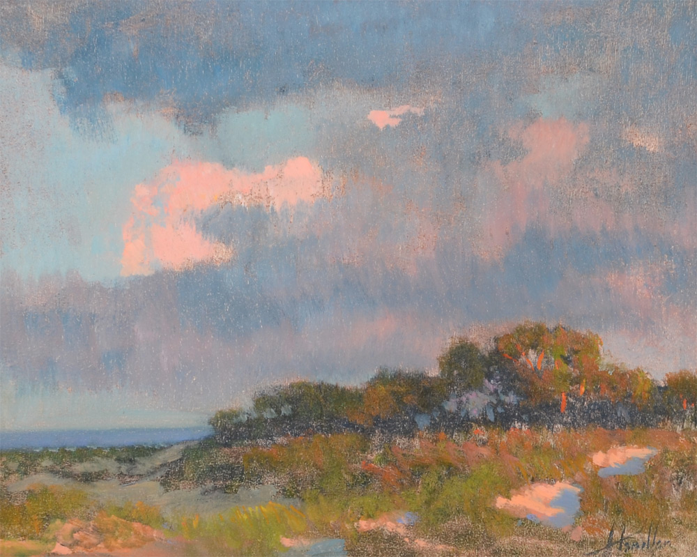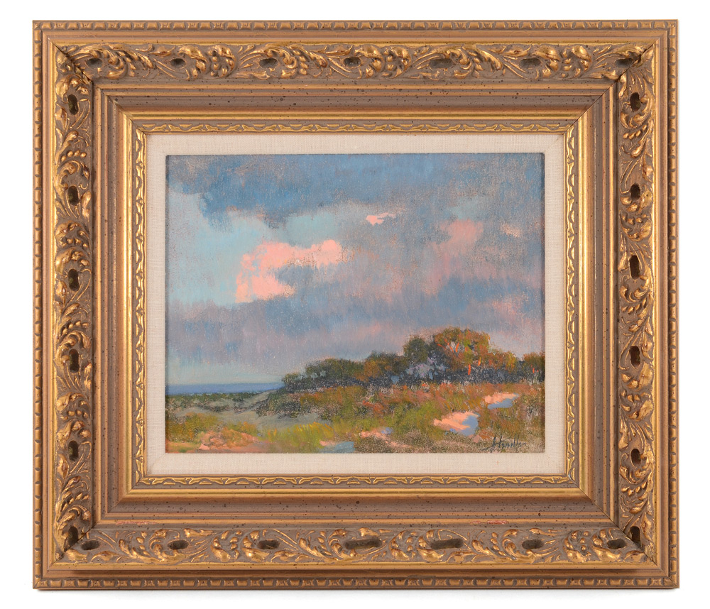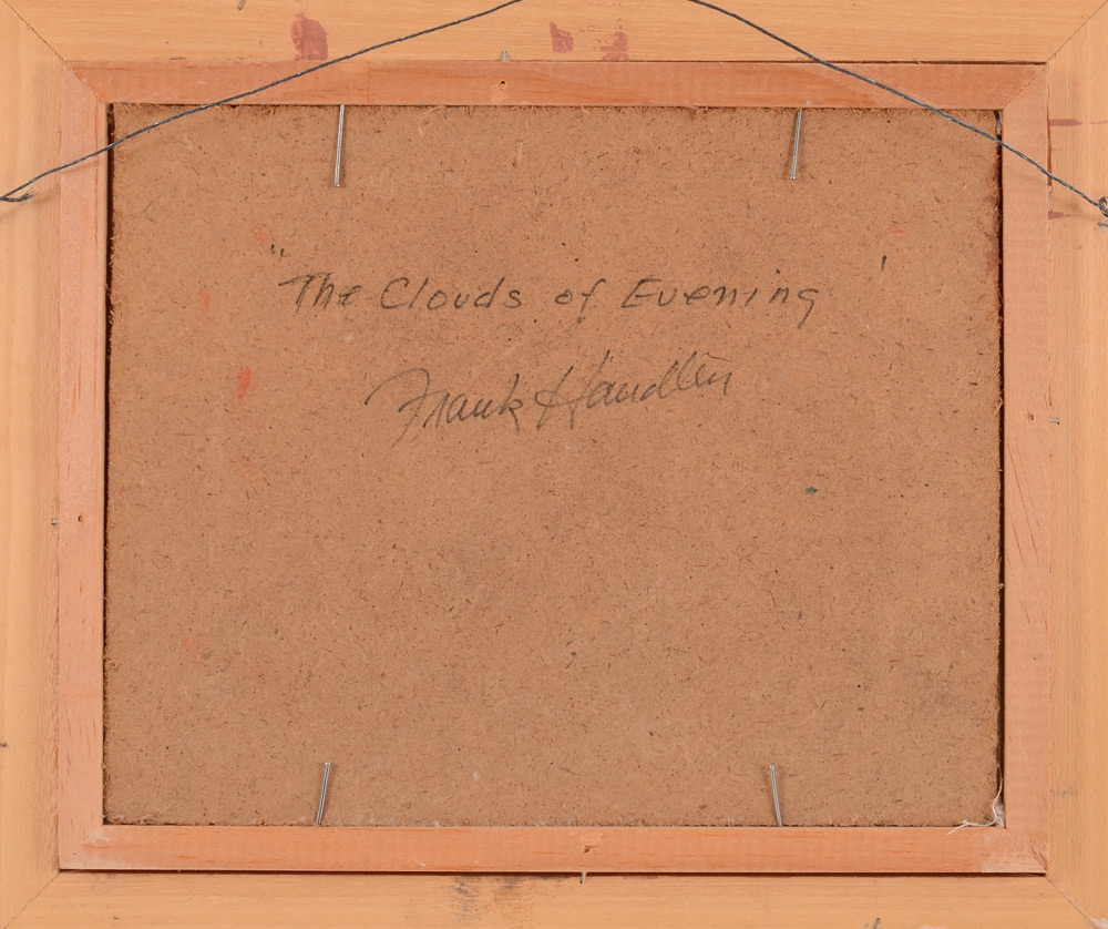 FRANK HANDLER PAINTING ''THE CLOUDS OF EVENING'': Oil/Board, 8'' x 10'', signed lower right, signed and titled verso, gilded frame 14 1/4'' x 16 1/4'', From the Collection of Arland Christ-Janer.