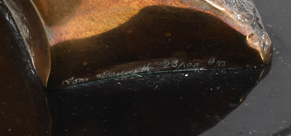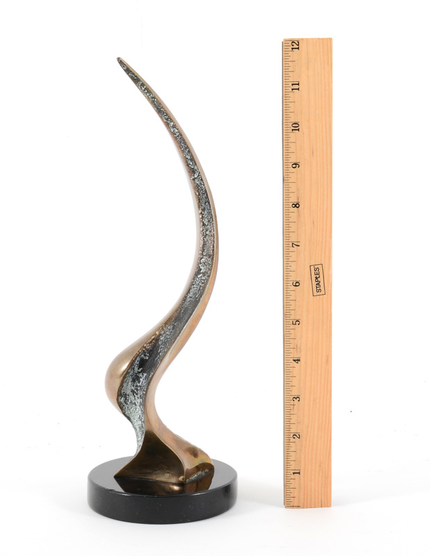 BENNETT, Tom, (American, 1928- ): Horn Abstract Form, Bronze, 11'' h., affixed to a black circular marble plinth, signed, #'d 23/100, dated '77.