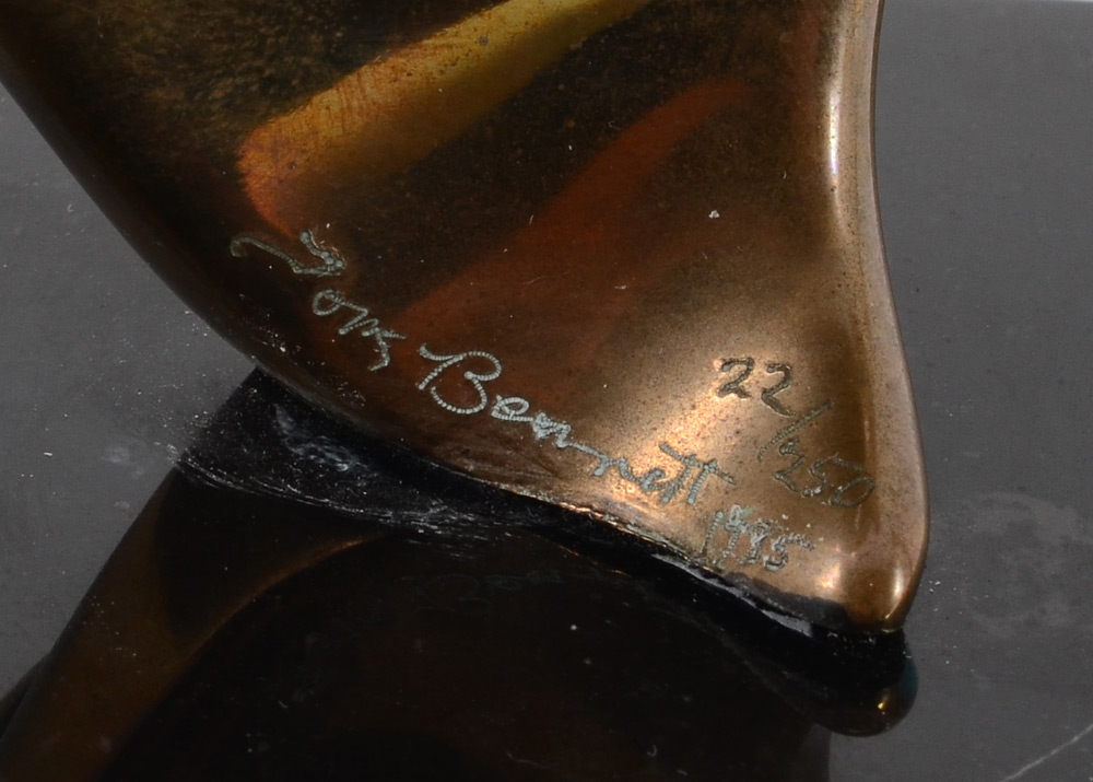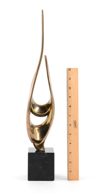 BENNETT, Tom, (American, 1928- ): Abstract Harp Form, Bronze, 15 1/4'' h., incised signature, #'d 22/250, dated 1985, affixed to a square beveled marble plinth 3'' h.