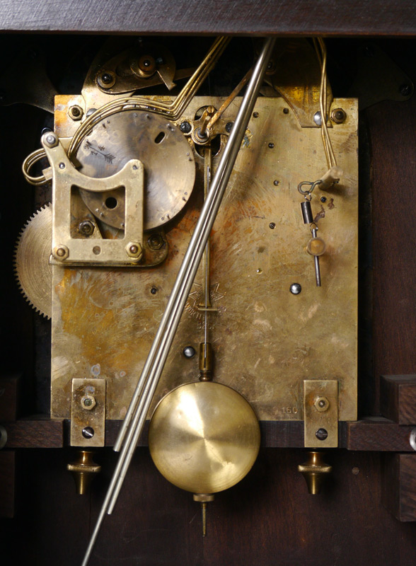 CONDITION: Scratches, rubs to case and dial. Alligatoring to case as well. Currently running however not guaranteed to continue. Key and pendulum in office.