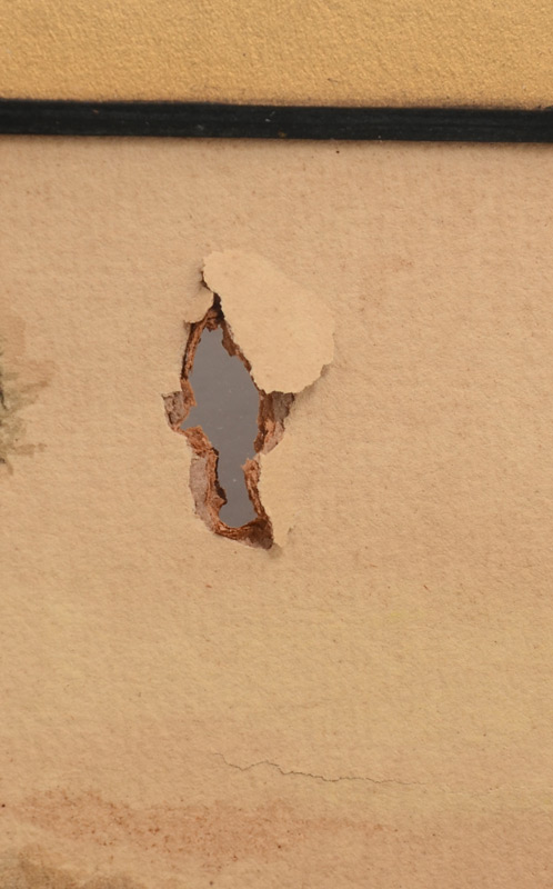 CONDITION: Browning paper, visible puncture with horizontal fold which has led to a partial tear in the right margin extending approximately 4 inches into the middle of the painting, sold as is.