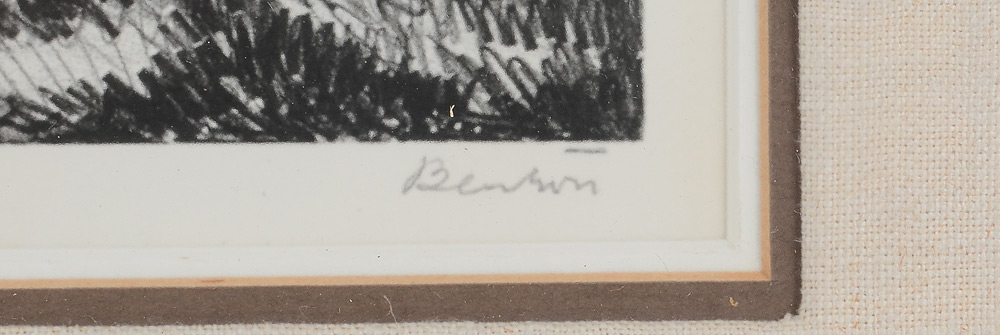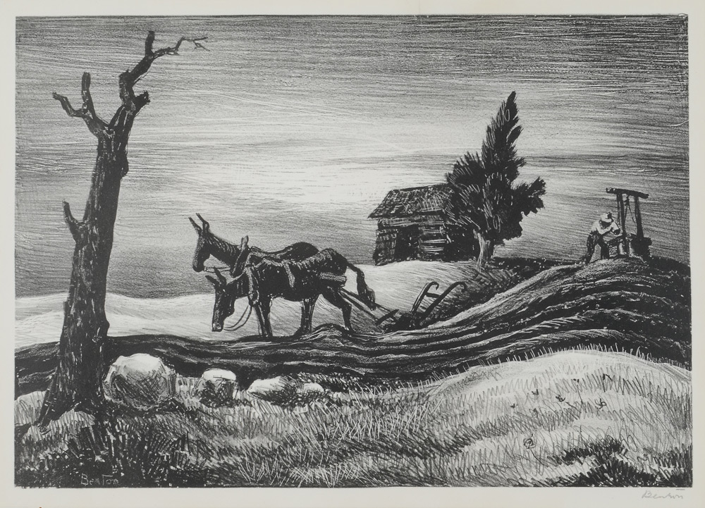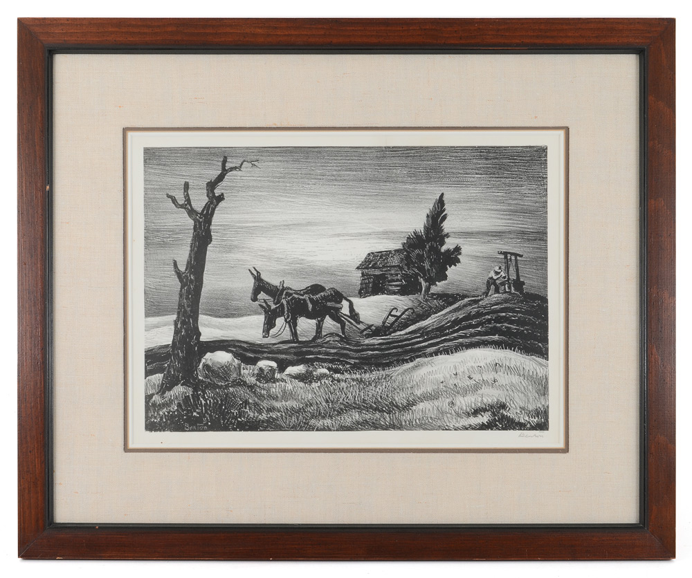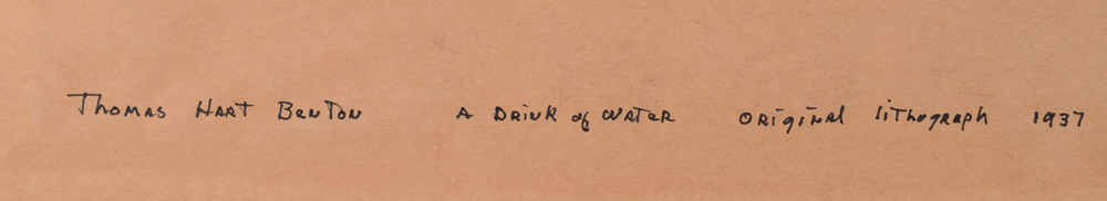 BENTON, Thomas Hart, (American, 1889-1975): ''A Drink of Water'', Lithograph, Sight size 10 5/8'' x 15'', pencil signed lower right, archivally framed with minor wear 19'' x 23 1/4'', From the Collection of Arland Christ-Janer.