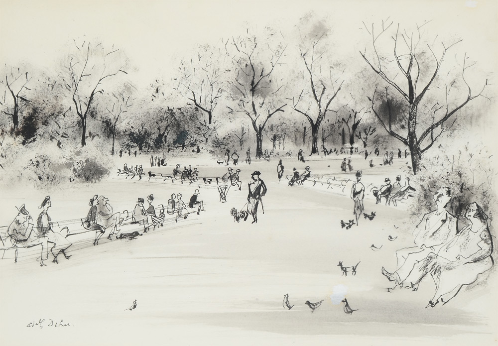 DEHN, Adolf Arthur, (American, 1895-1968): New York City Central Park, Lithograph, Sight size 13 1/4'' x 19 1/4'', signed lower left in pencil, custom framed with archival materials 22 1/4'' x 27 1/4''. From the Collection of former New College and Yale President, Dr. Arland Christ-Janer. Dr. Christ-Janer was also the former Director of the Ringling Museum of Fine Art.