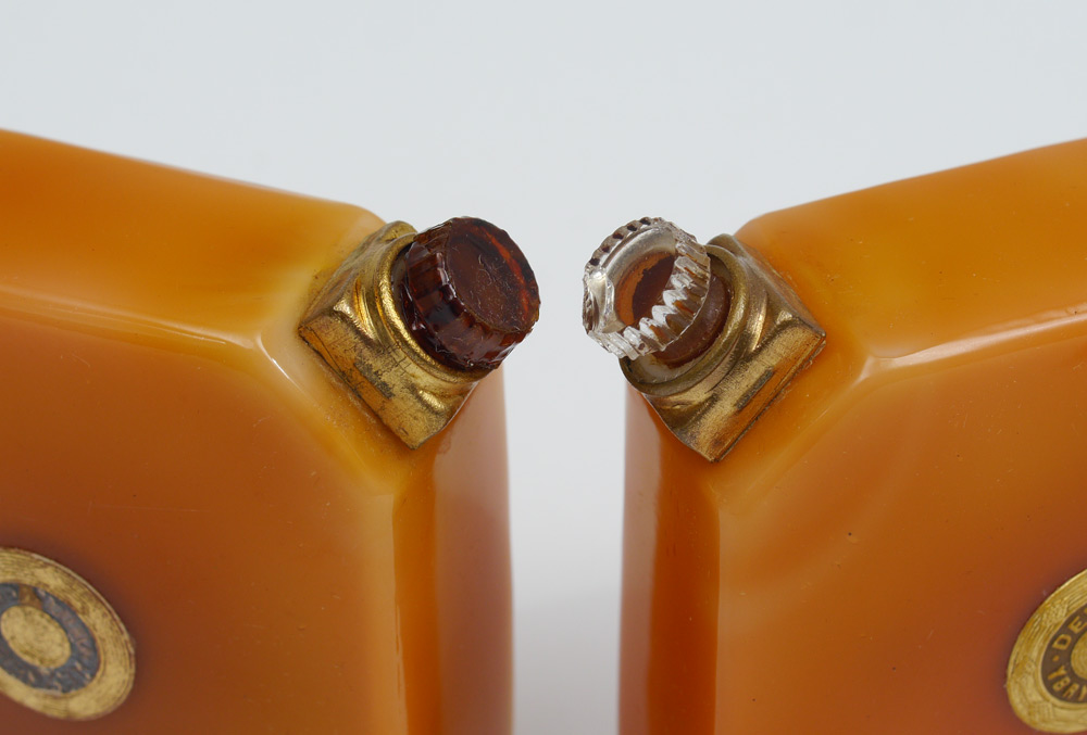 CONDITION: The glass is all good. The interior stoppers are fixed tight and the boxes have scuffs.