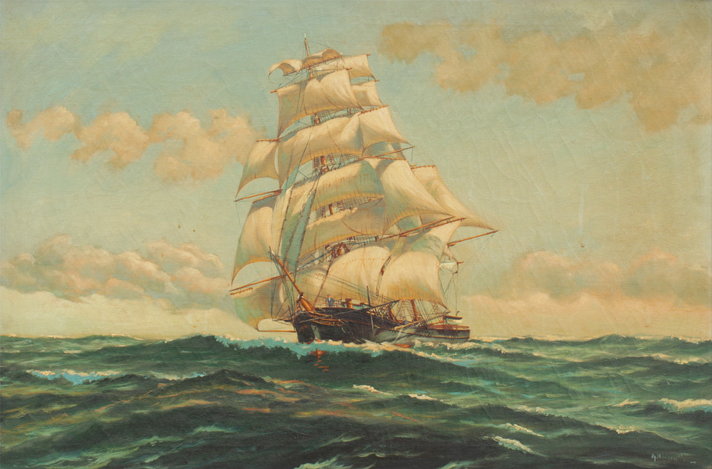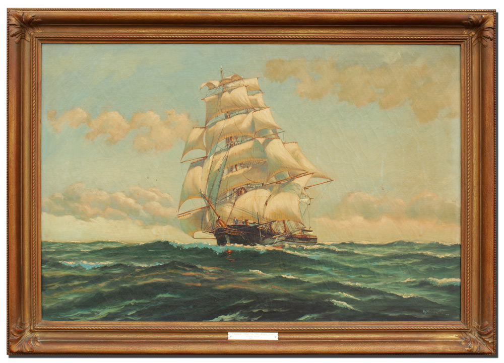 WHEATLEY, George, (American, 1895- ): Clipper Ship on the High Seas, Oil/Canvas, 24'' x 36'', signed lower right, encased in a carved and gilded frame 29 1/2'' x 41 1/2''.