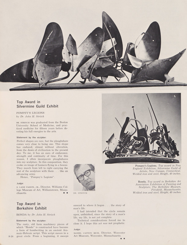 STRITCH, John, (American, 20th Century): ''Pompey's Legions'', Welded Metal Sculpture, 38'' x 117'' x 21'', this sculpture was given top award in the Silvermine Guild exhibit, 1967. Published in book, ''Prize Winning Sculpture'', by Allied Publications.